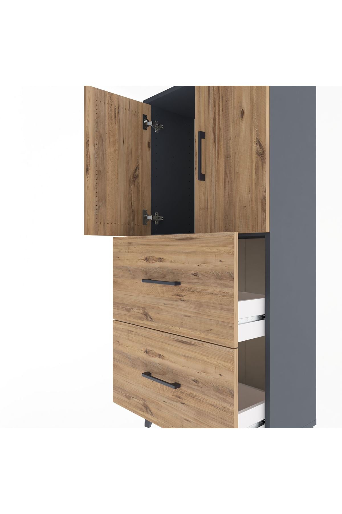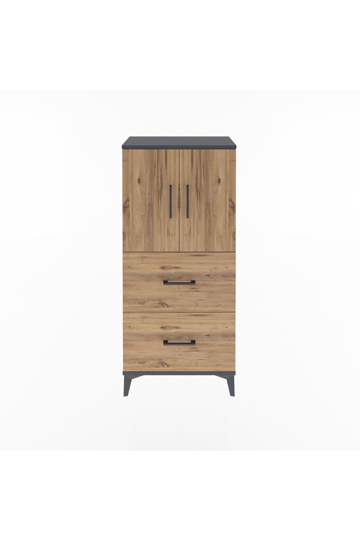 Arges Dolap Tek Raflı 2 Çekmeceli 2 Kapaklı 60x30x134 Antrasit-Çam