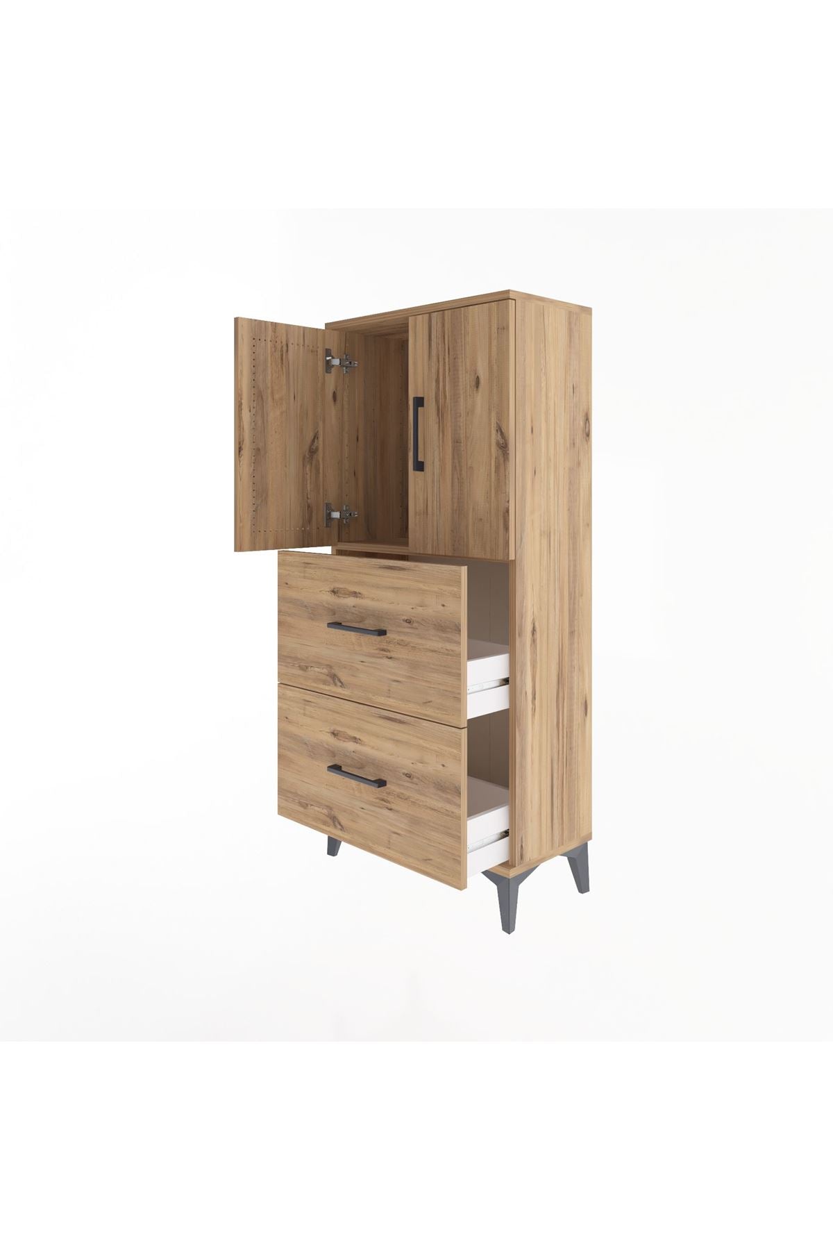 Arges Dolap Tek Raflı 2 Çekmeceli 2 Kapaklı 60x30x134 Çam-Çam