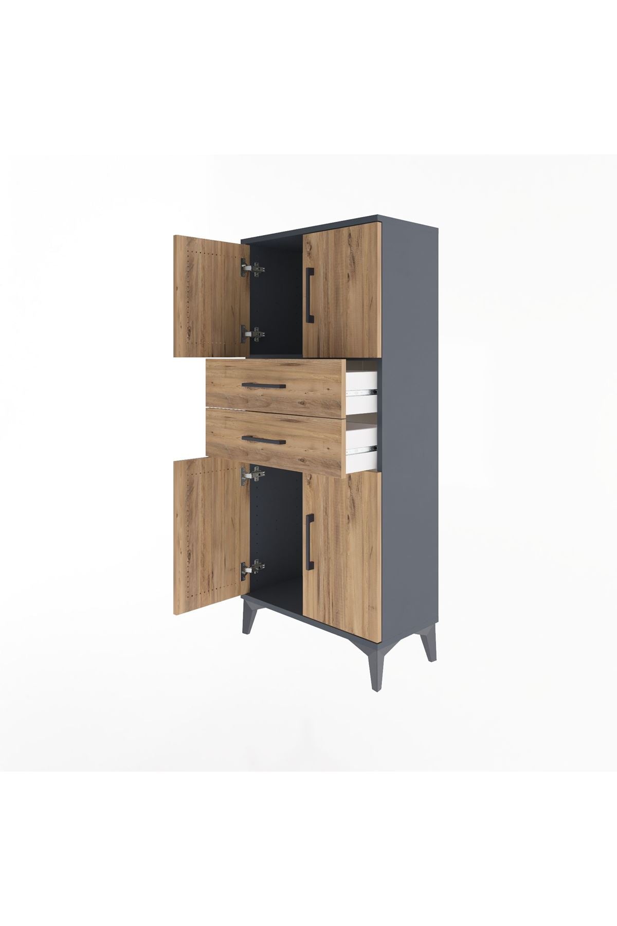 Arges Dolap Tek Raflı 2 Çekmeceli 4 Kapaklı 60x30x134 Antrasit-Çam
