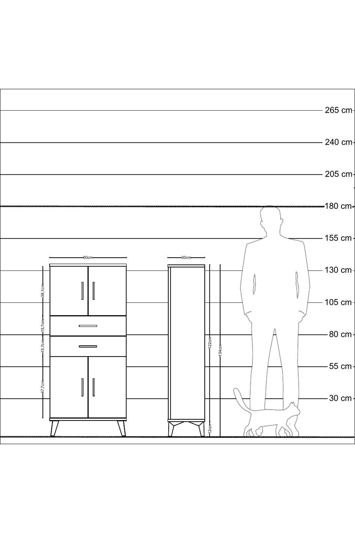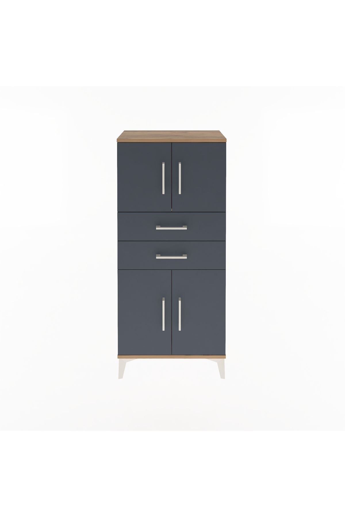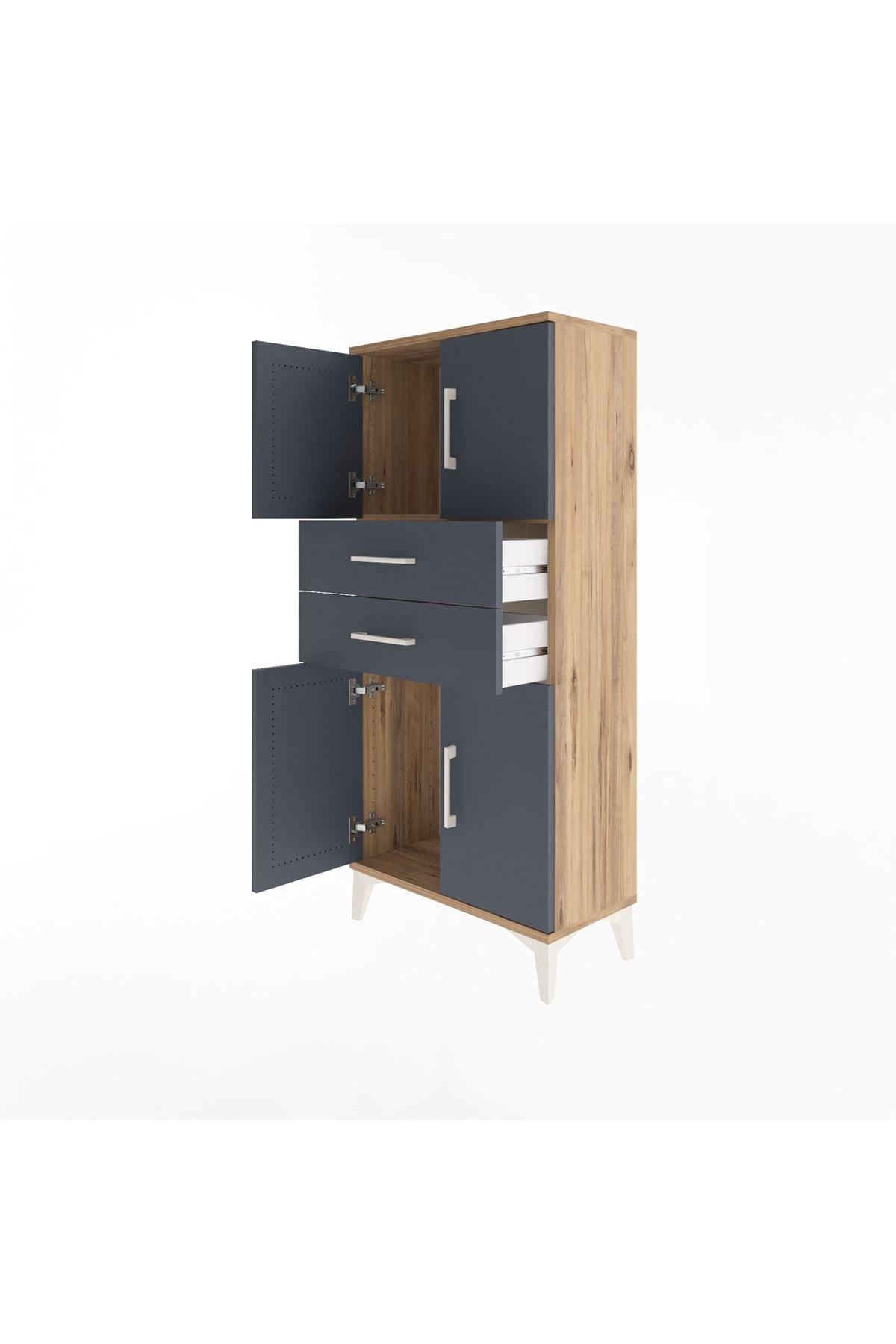 Arges Dolap Tek Raflı 2 Çekmeceli 4 Kapaklı 60x30x134 Çam-Antrasit