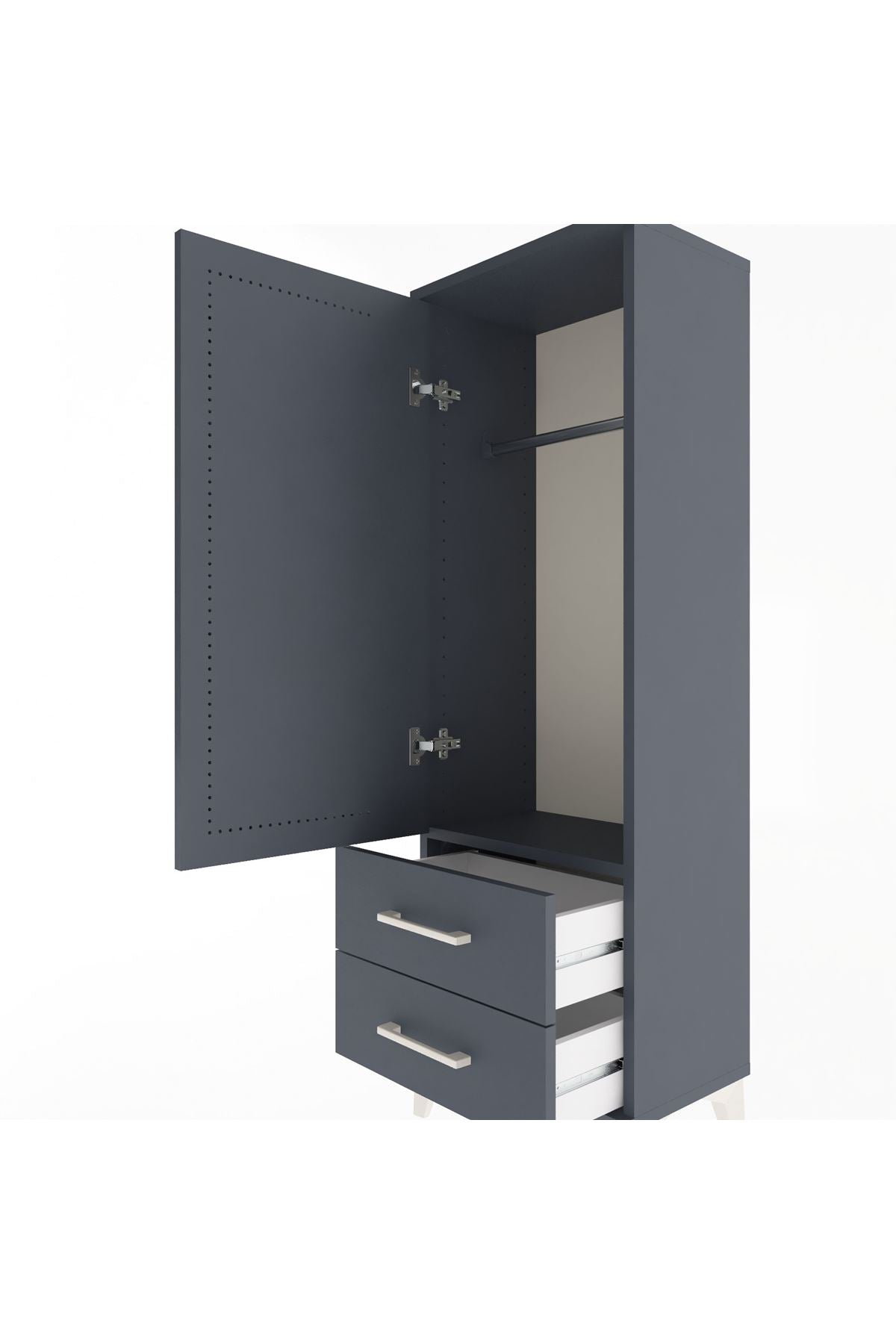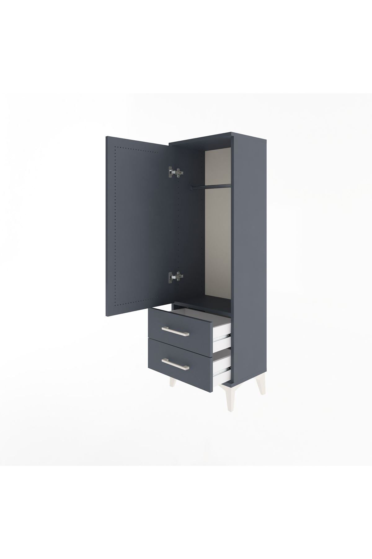 Arges Dolap Tek Raflı 2 Çekmeceli Tek Askılı 44x30x134 Antrasit-Antrasit