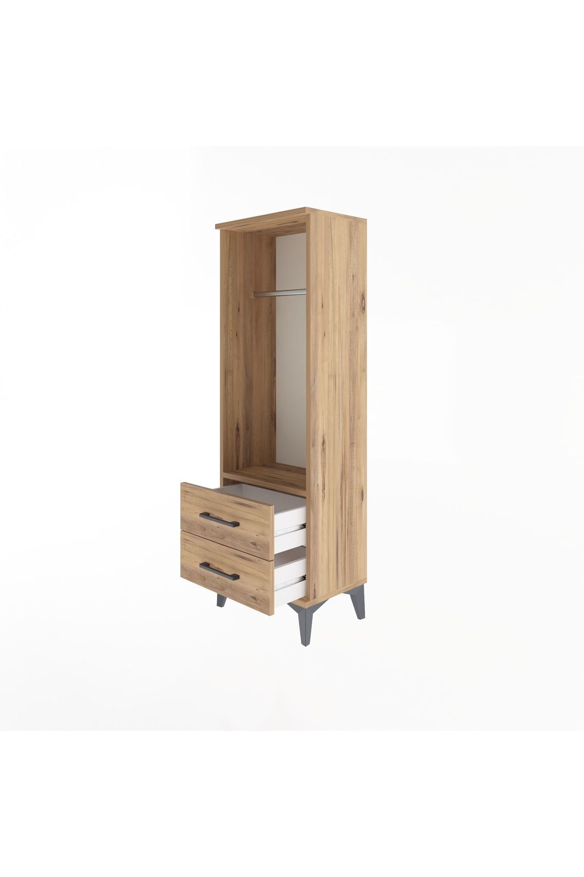 Arges Dolap Tek Raflı 2 Çekmeceli Tek Askılı 44x30x134 Çam-Çam