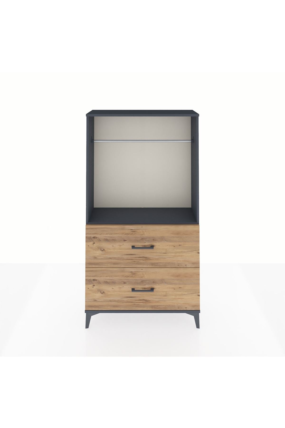 Arges Dolap Tek Raflı 2 Çekmeceli Tek Askılı 88x30x163 Antrasit-Çam