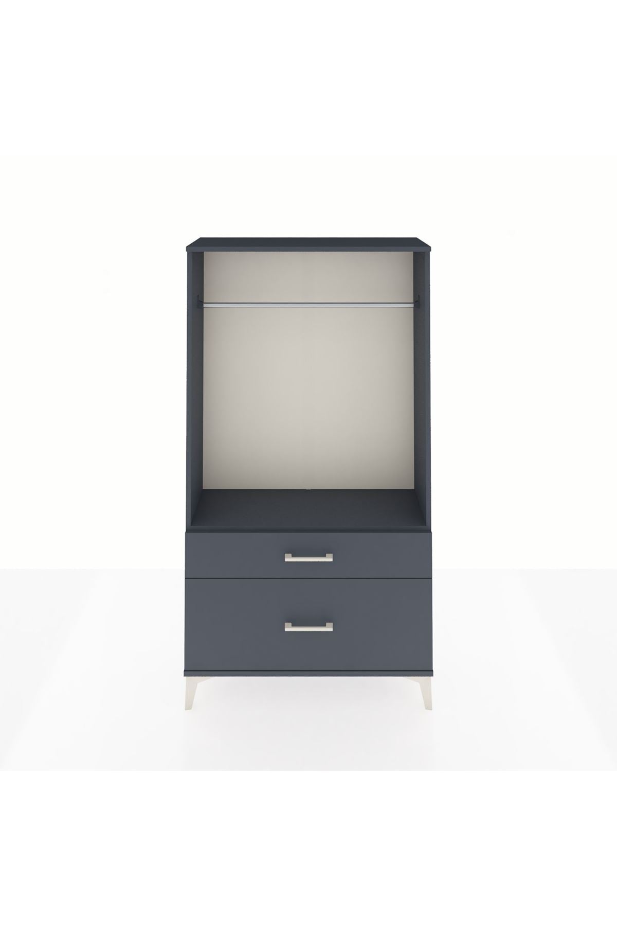 Arges Dolap Tek Raflı 2 Çekmeceli Tek Askılı 88x30x163 Antrasit-Antrasit