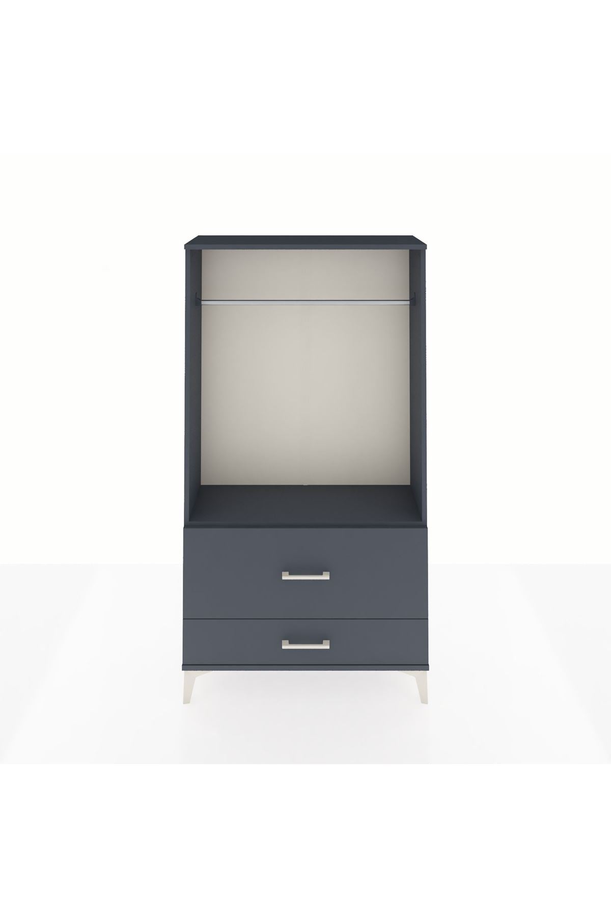Arges Dolap Tek Raflı 2 Çekmeceli Tek Askılı 88x30x163 Antrasit-Antrasit