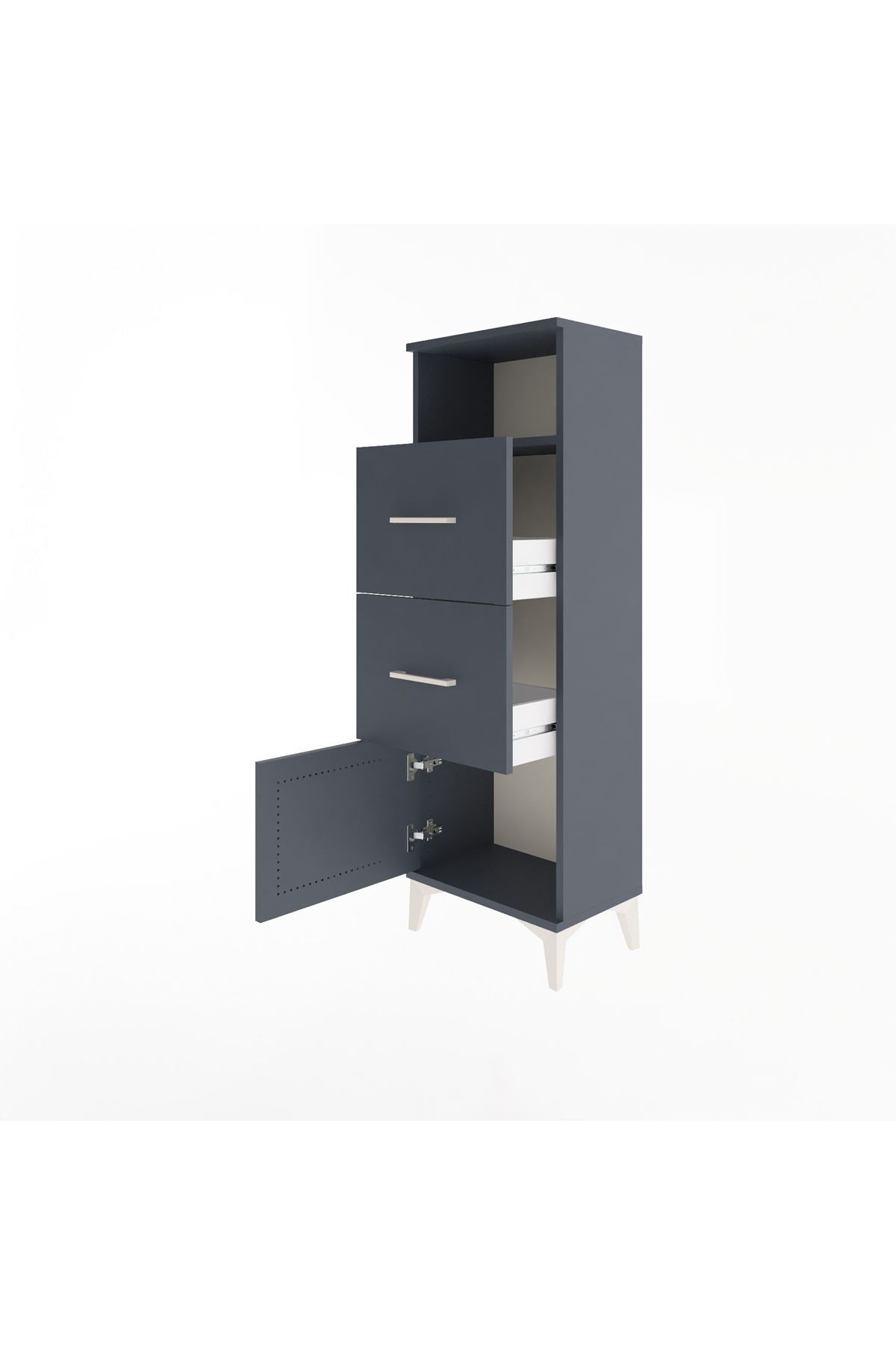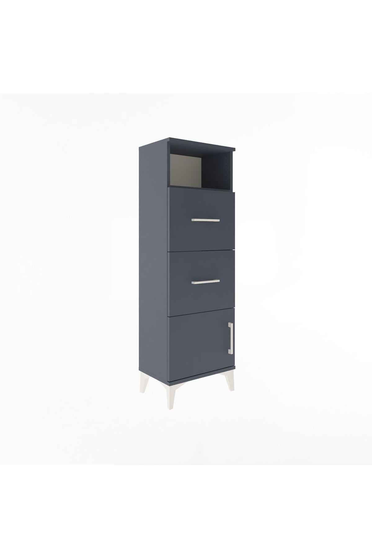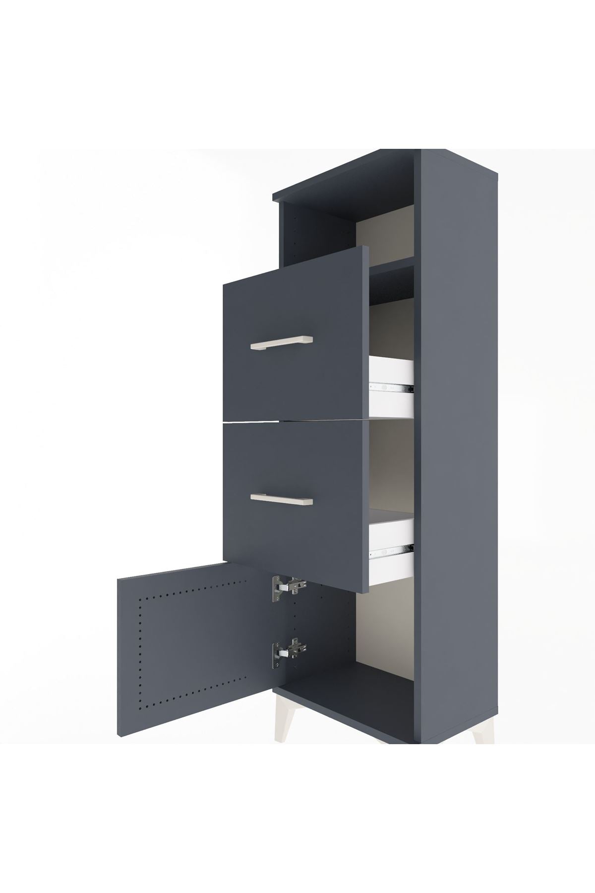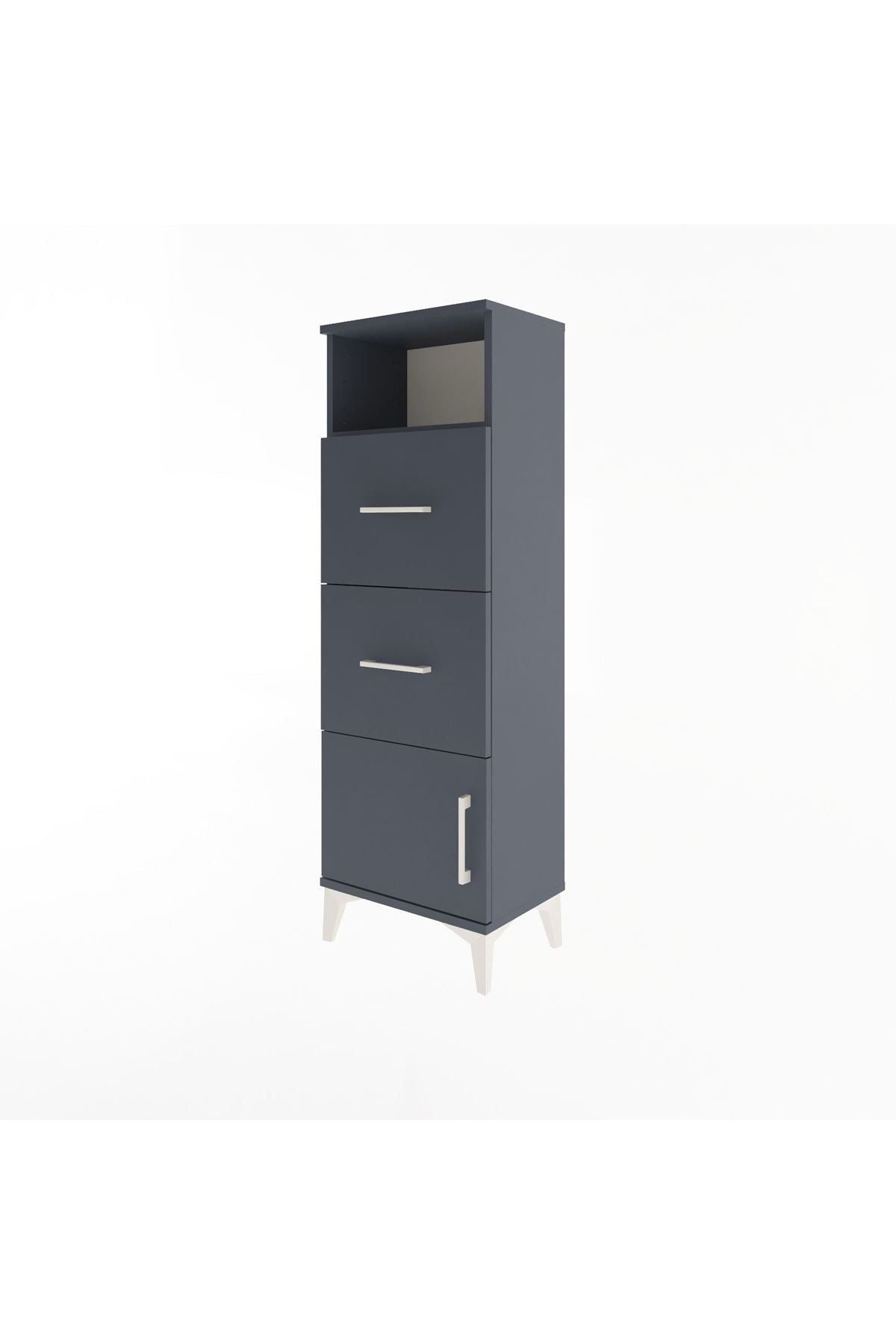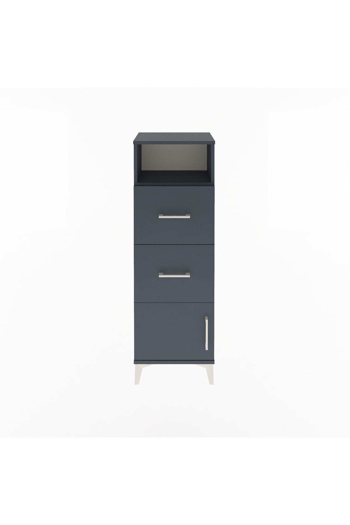Arges Dolap Tek Raflı 2 Çekmeceli Tek Kapaklı 44x30x134 Antrasit-Antrasit