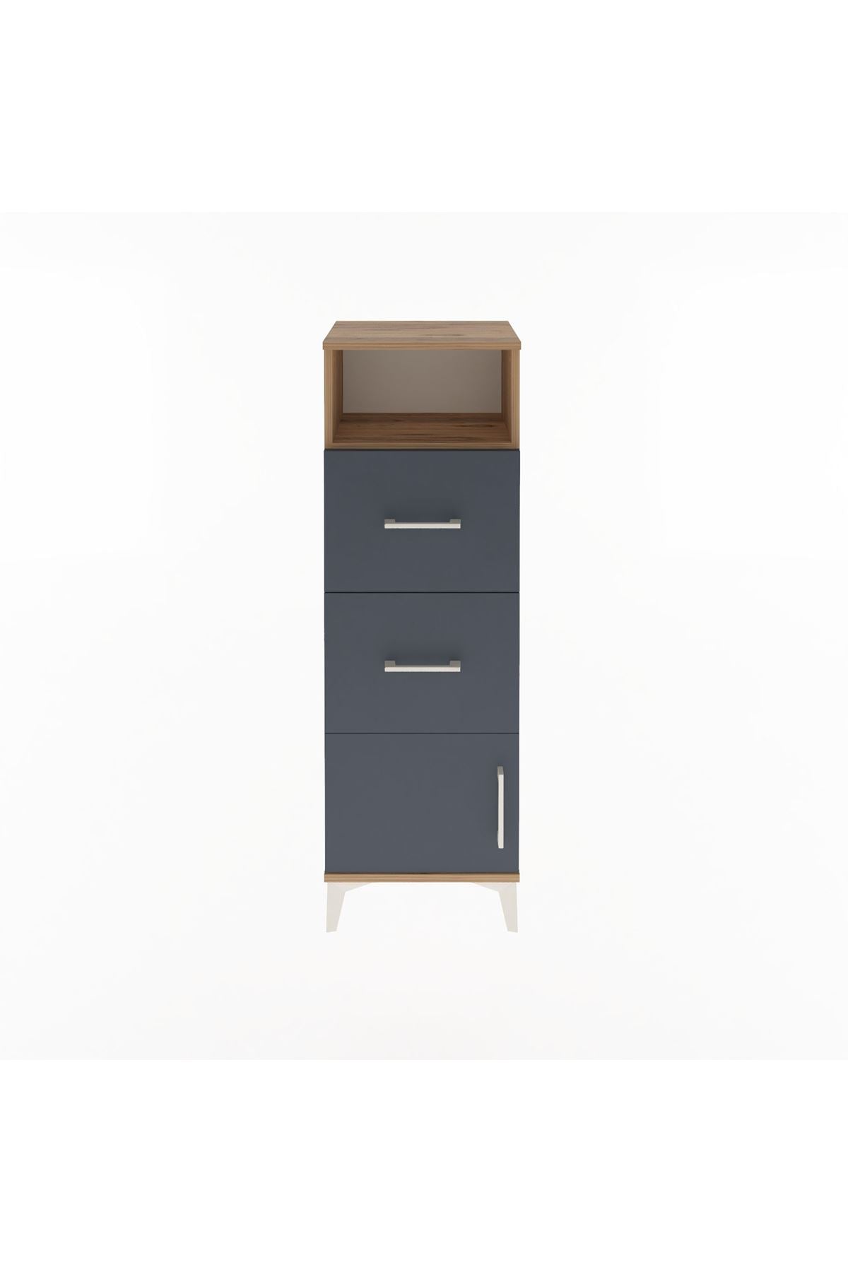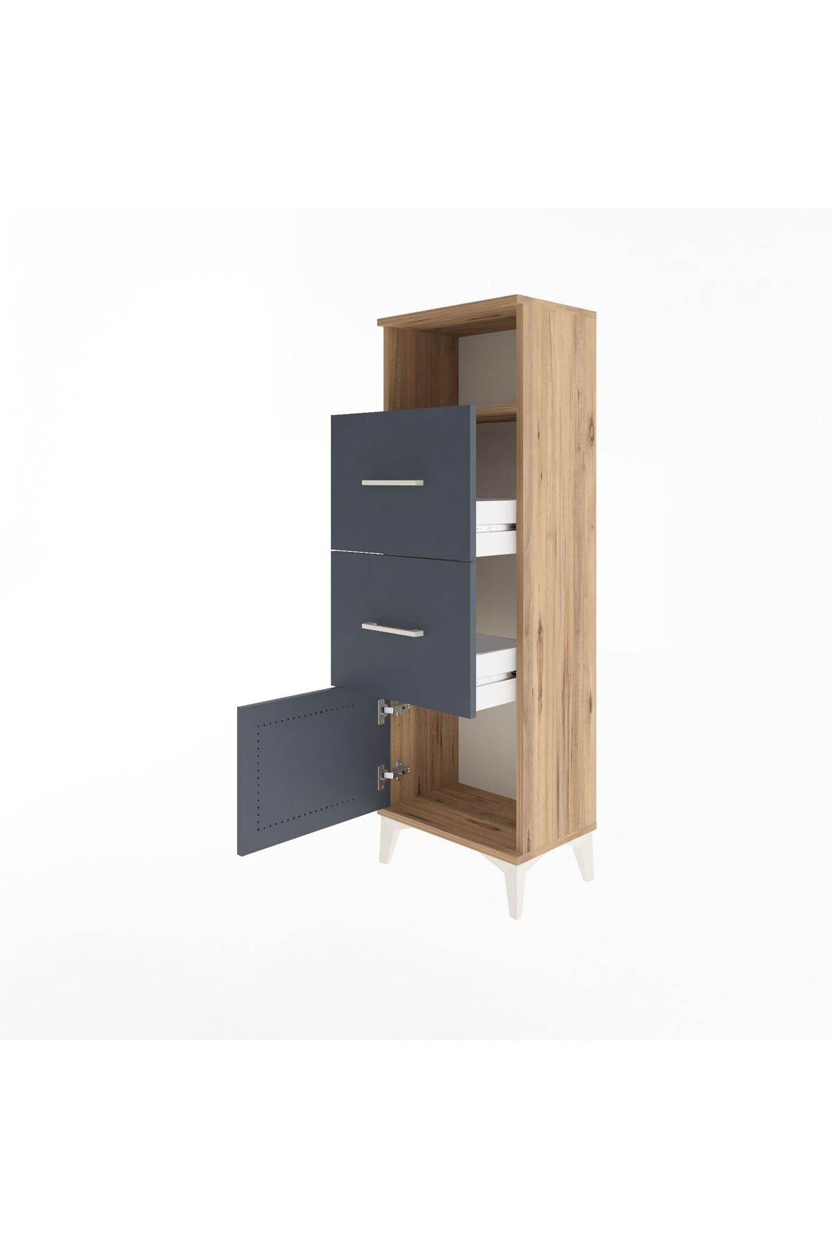 Arges Dolap Tek Raflı 2 Çekmeceli Tek Kapaklı 44x30x134 Çam-Antrasit
