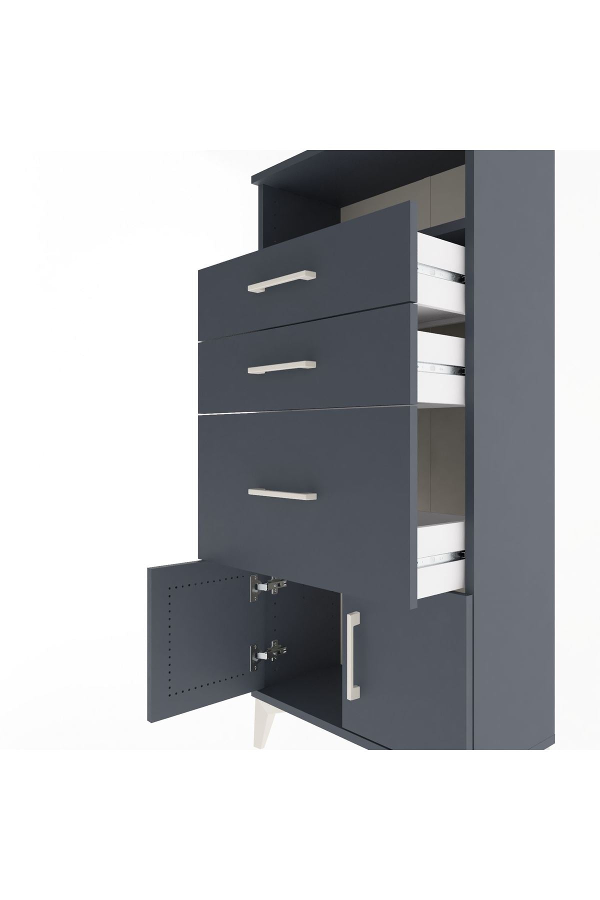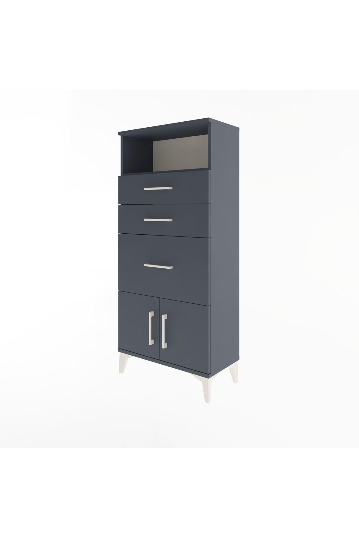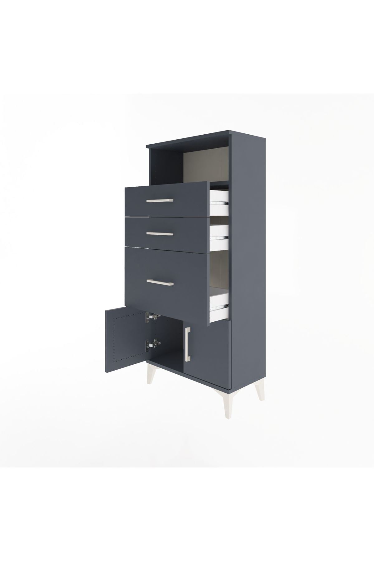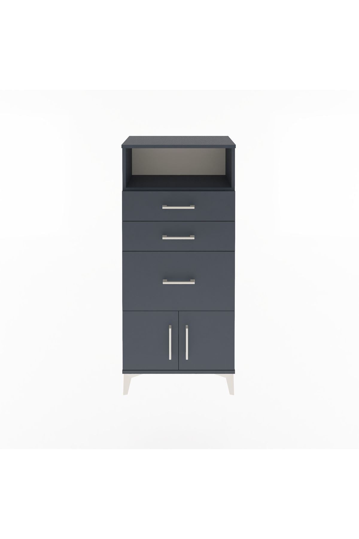 Arges Dolap Tek Raflı 3 Çekmeceli 2 Kapaklı 60x30x134 Antrasit-Antrasit
