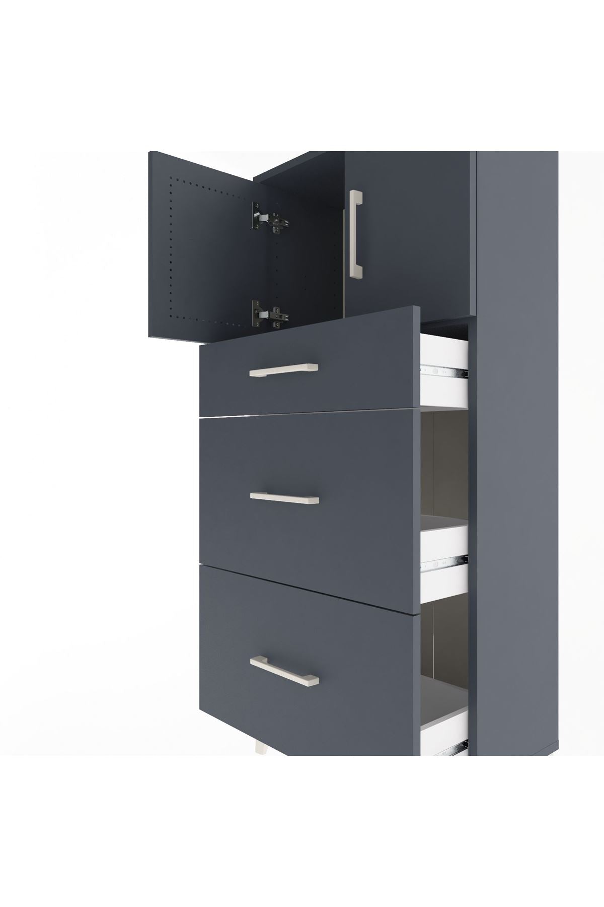 Arges Dolap Tek Raflı 3 Çekmeceli 2 Kapaklı 60x30x134 Antrasit-Antrasit