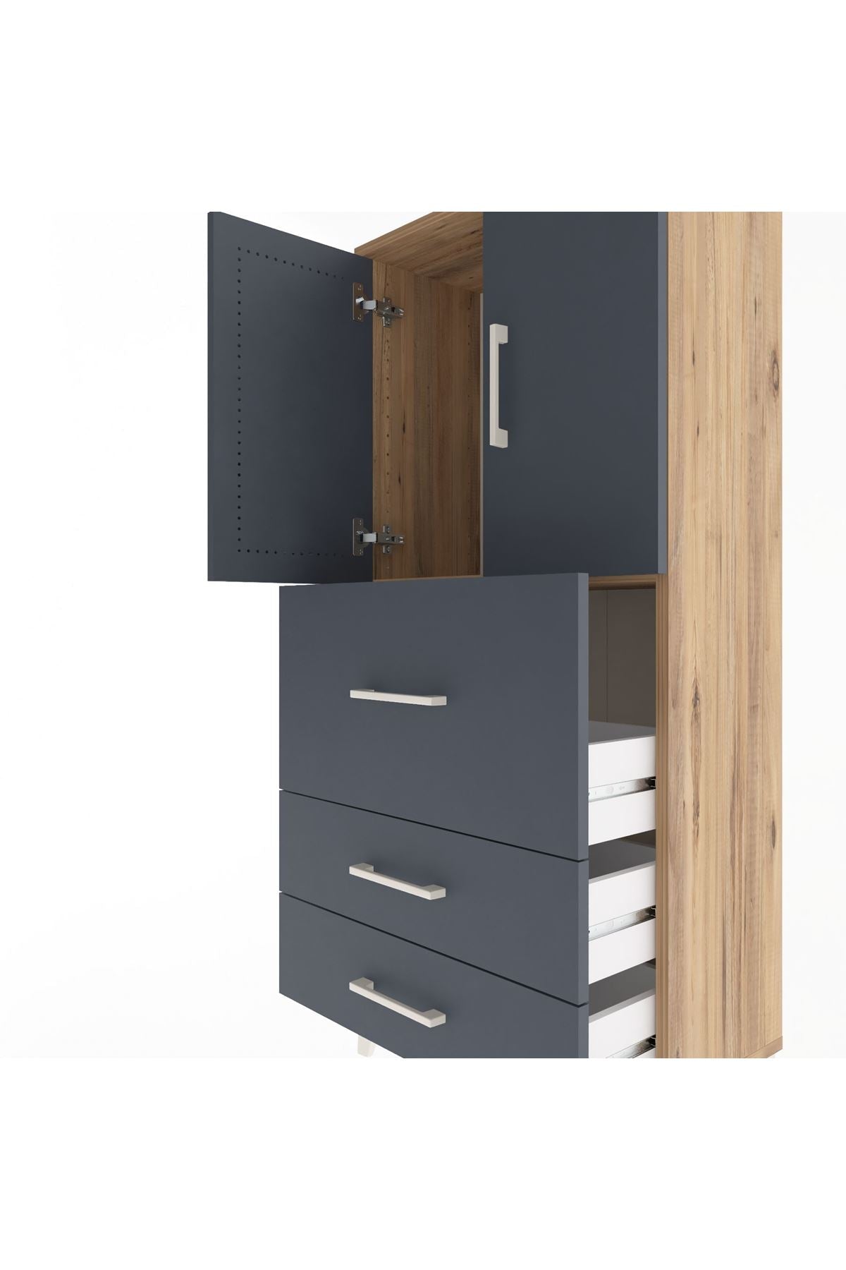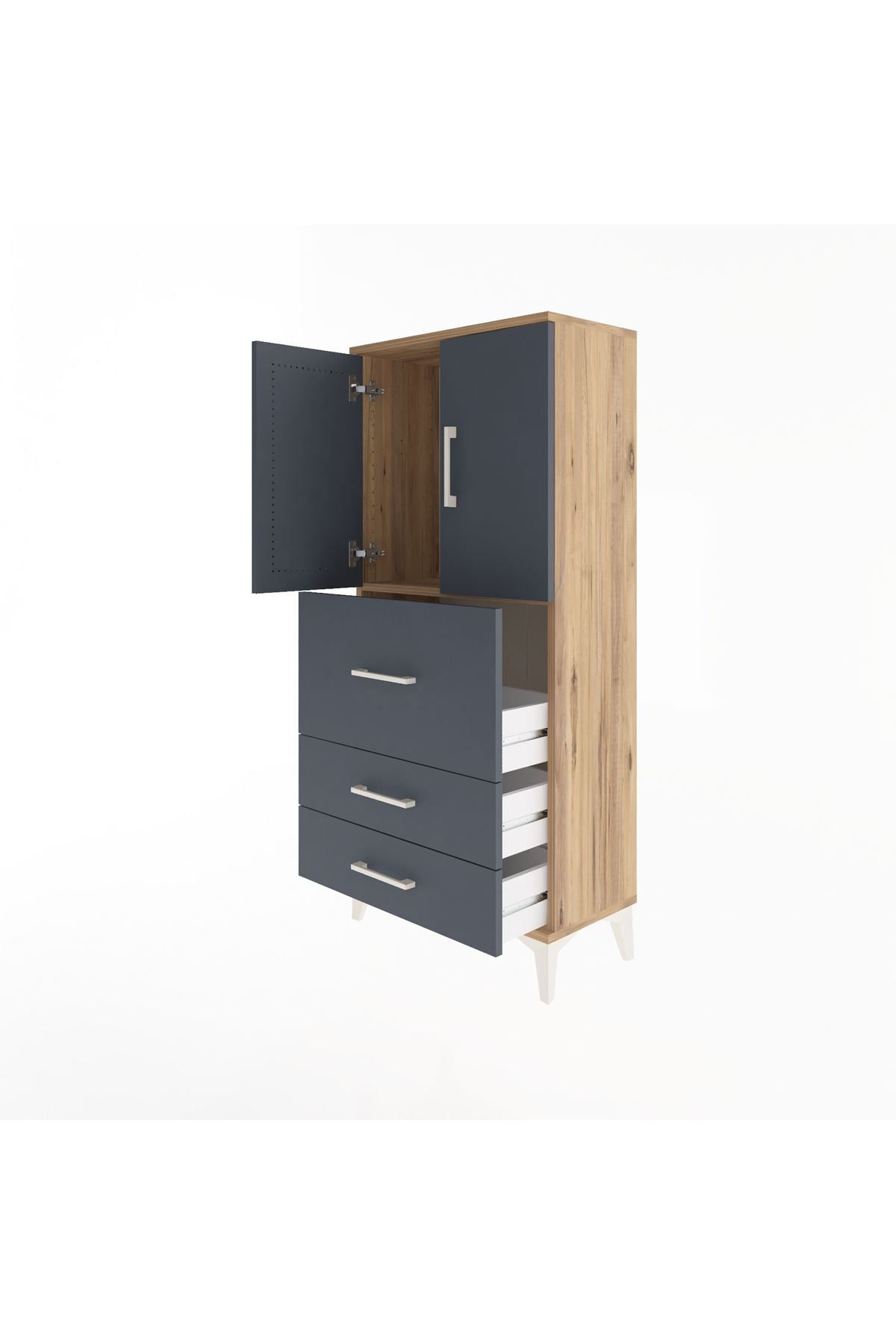 Arges Dolap Tek Raflı 3 Çekmeceli 2 Kapaklı 60x30x134 Çam-Antrasit