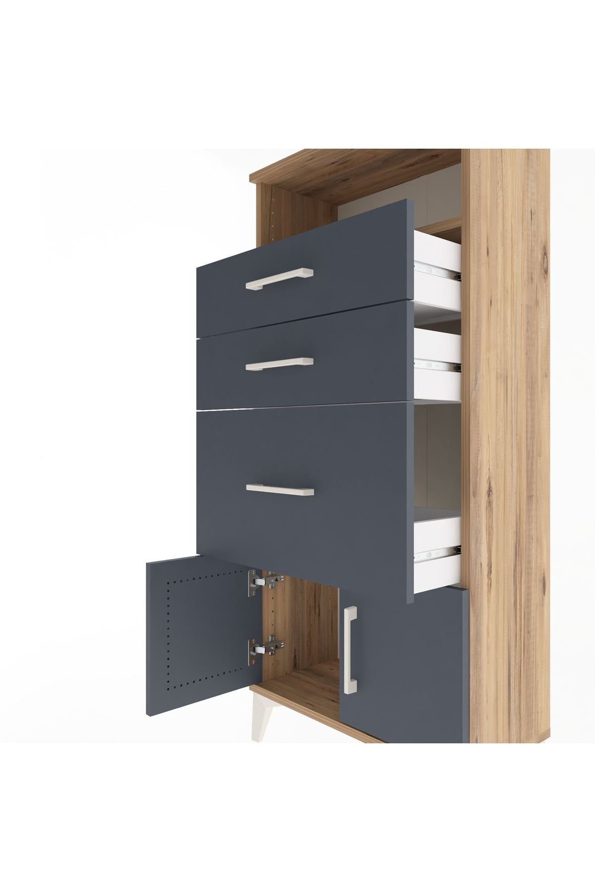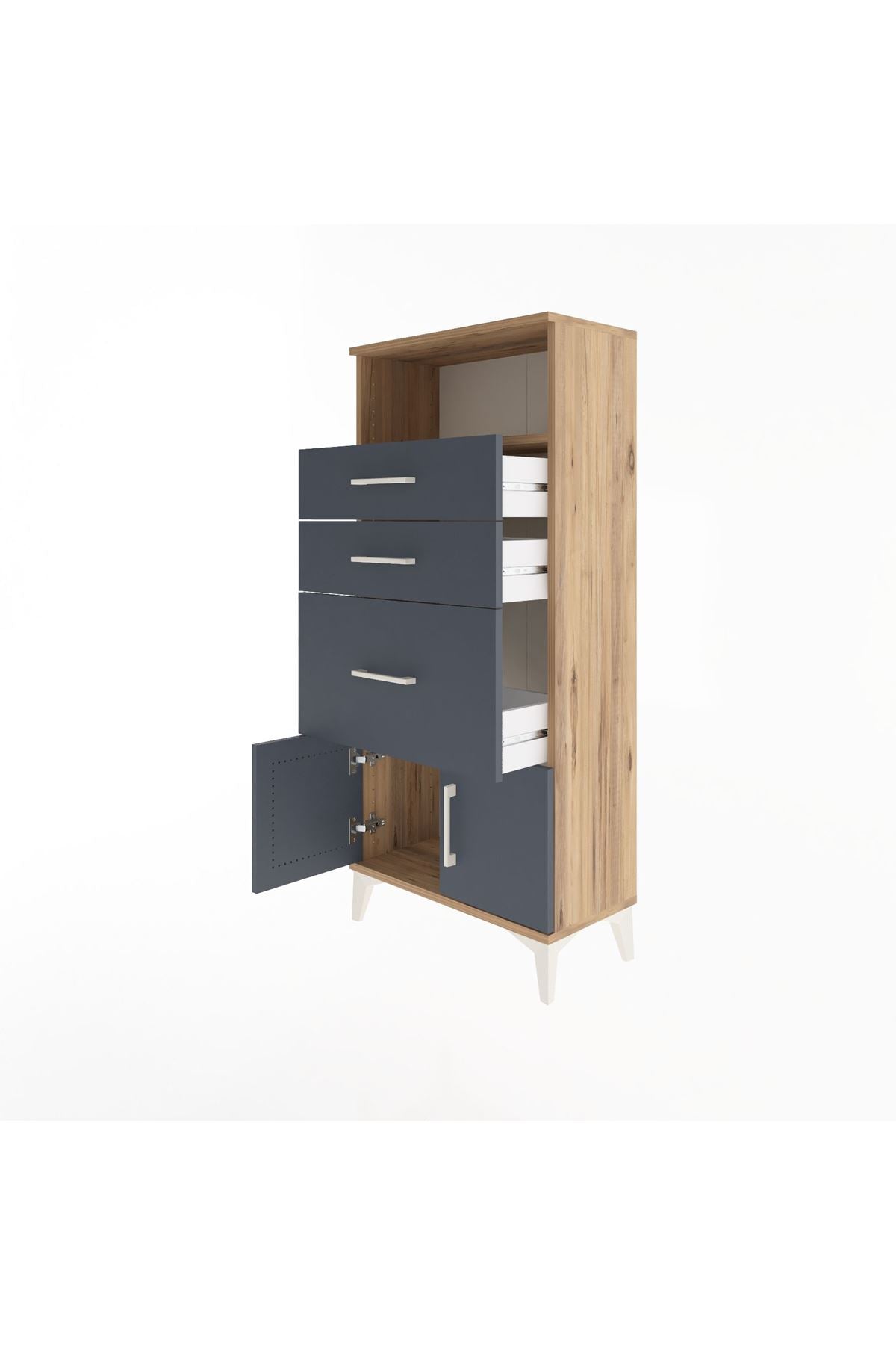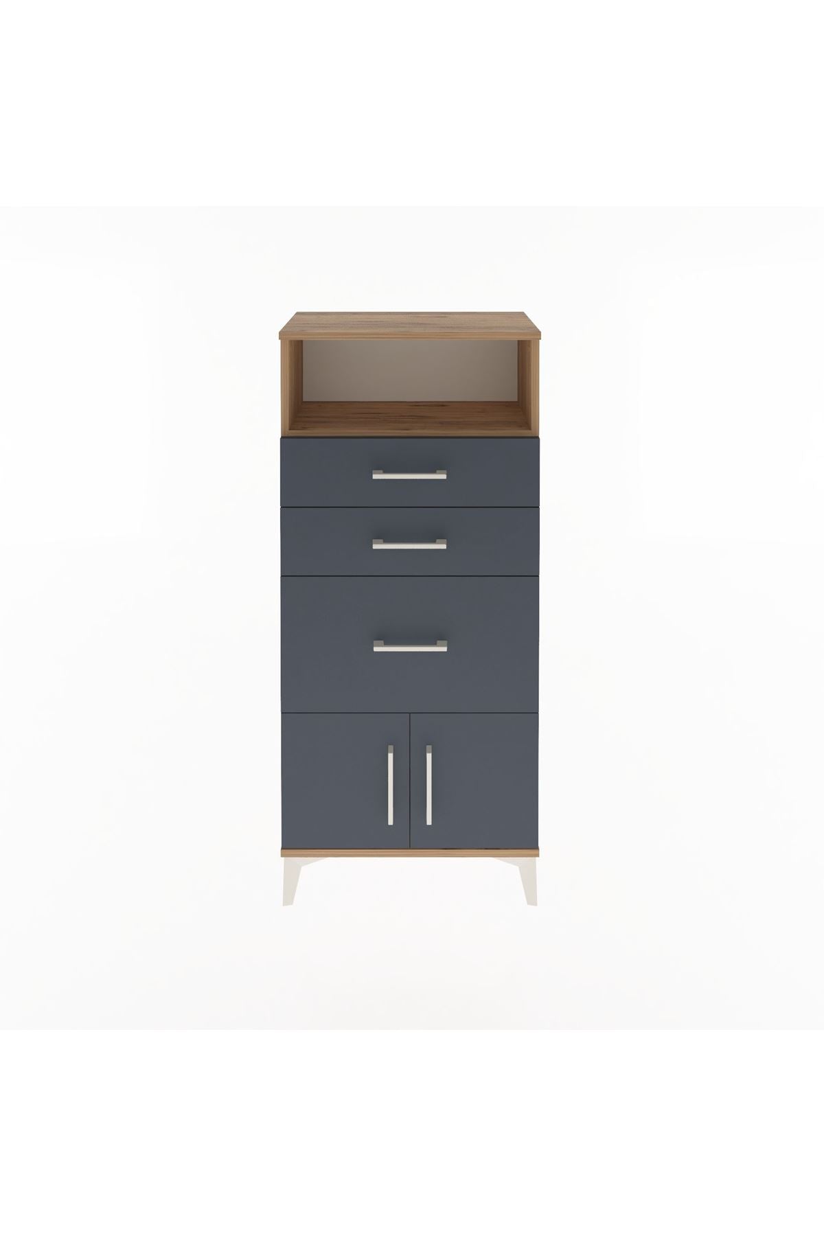 Arges Dolap Tek Raflı 3 Çekmeceli 2 Kapaklı 60x30x134 Çam-Antrasit