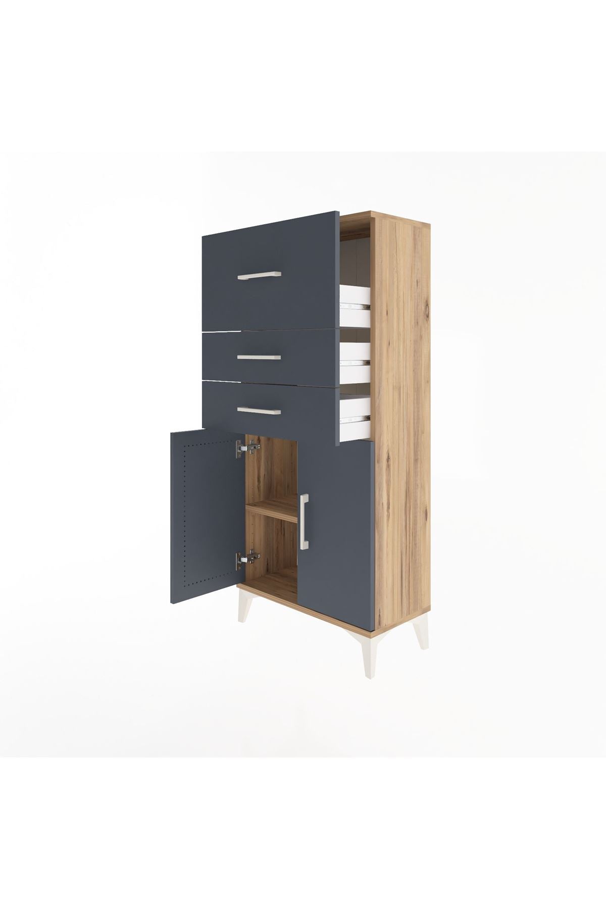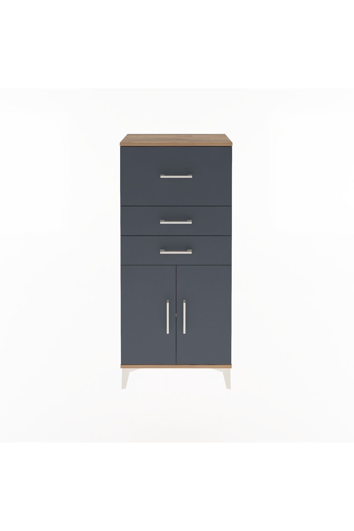 Arges Dolap Tek Raflı 3 Çekmeceli 2 Kapaklı 60x30x134 Çam-Antrasit