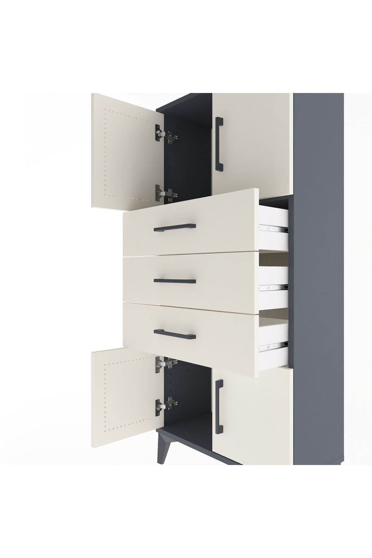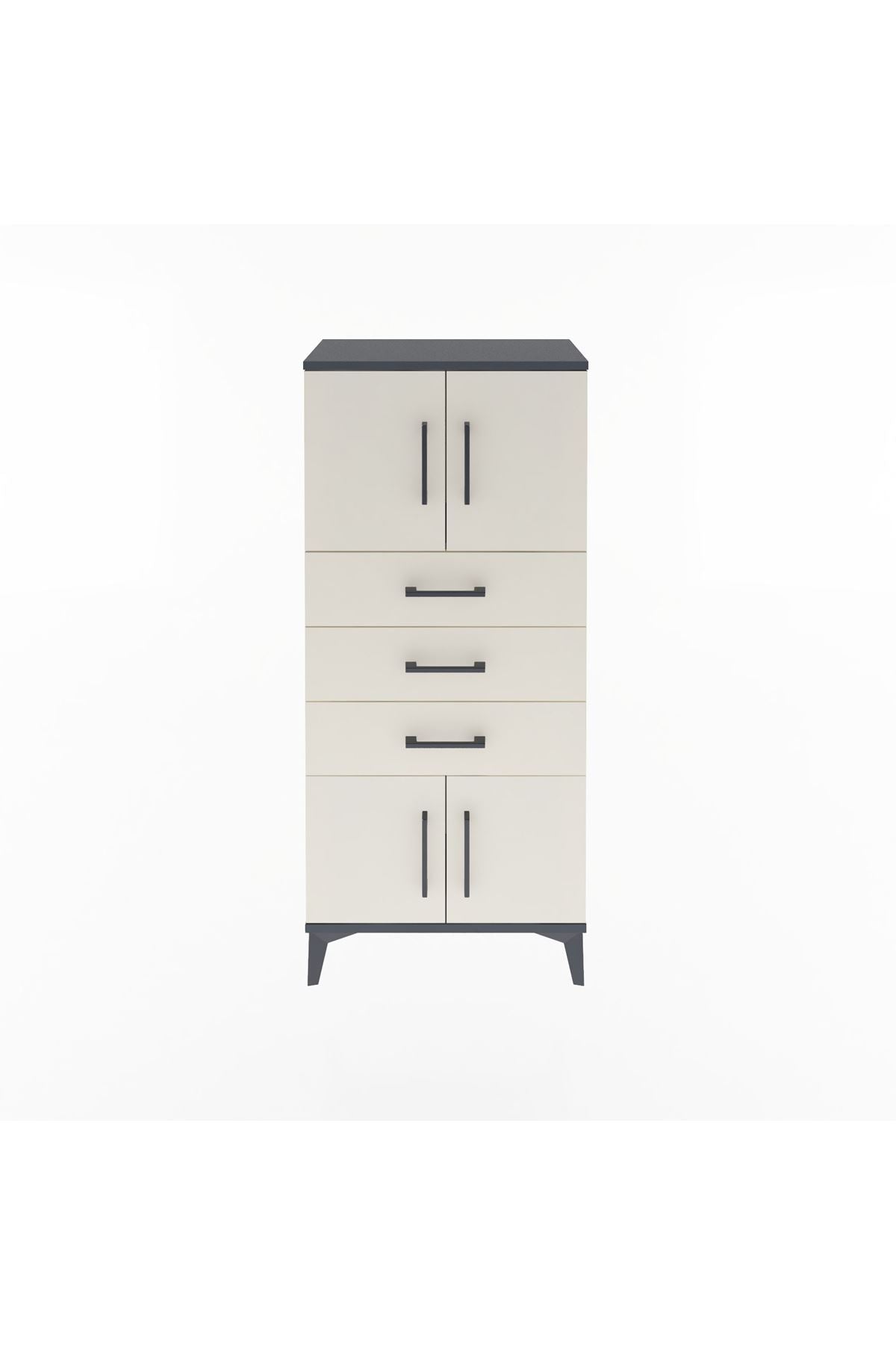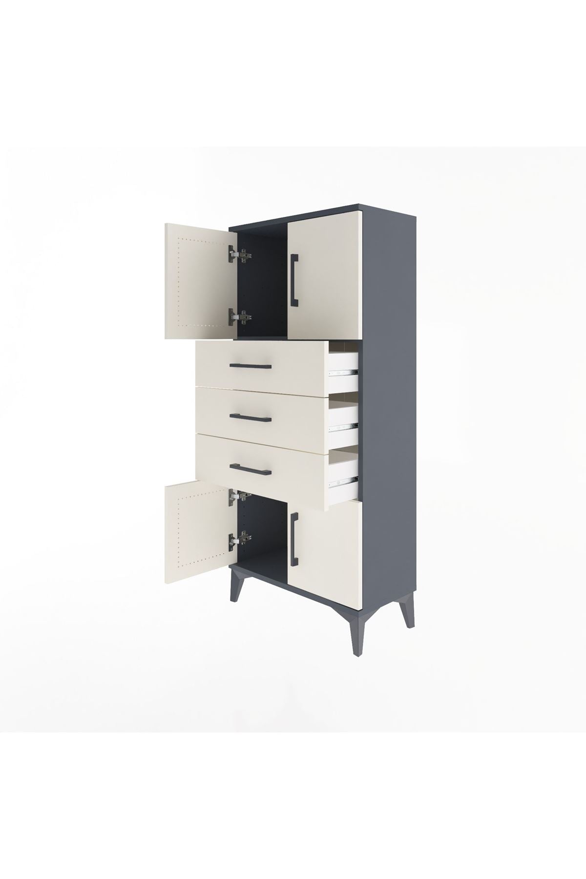 Arges Dolap Tek Raflı 3 Çekmeceli 4 Kapaklı 60x30x134 Antrasit-Aytaşı