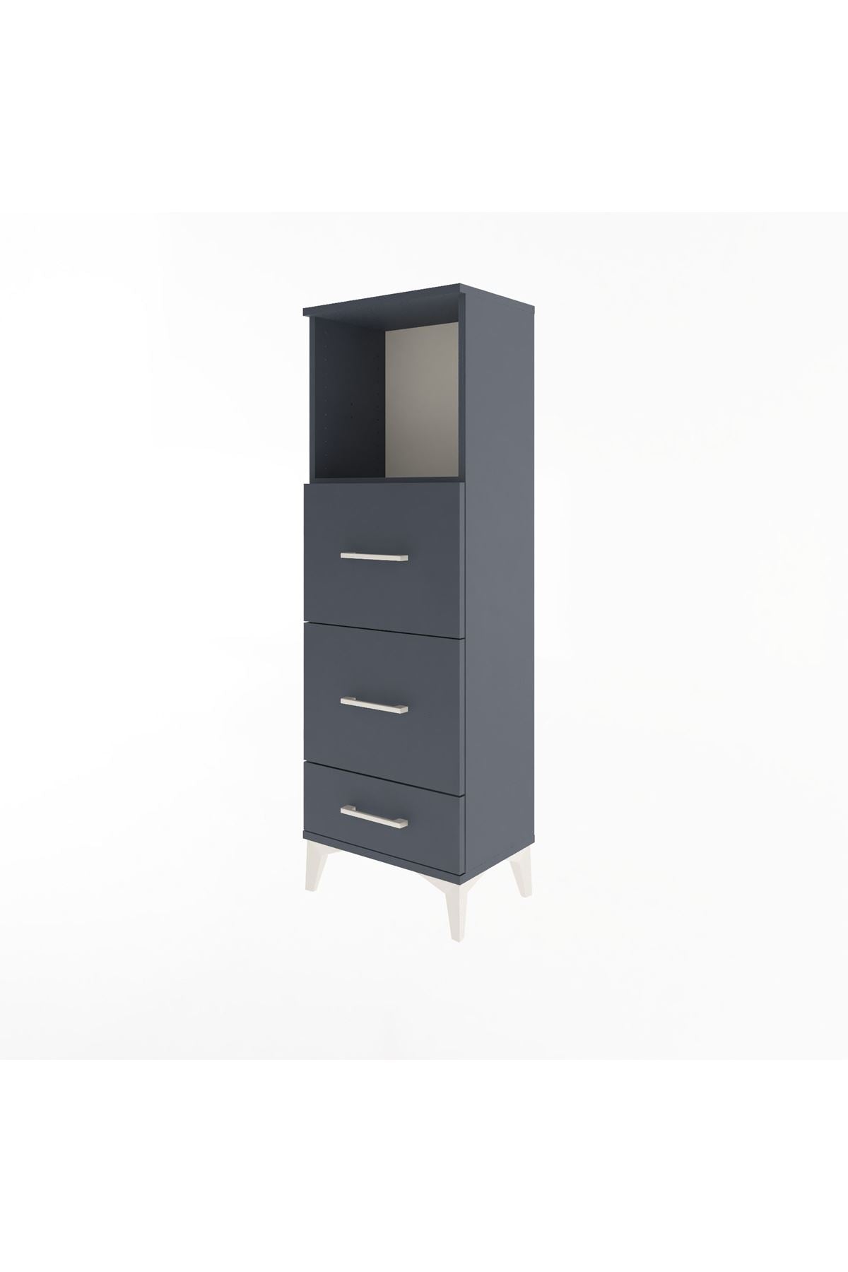 Arges Dolap Tek Raflı 3 Çekmeceli 44x30x134 Antrasit-Antrasit
