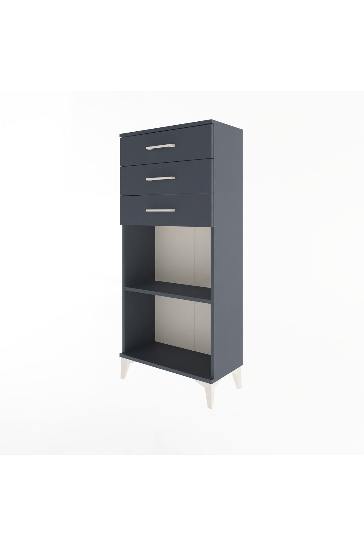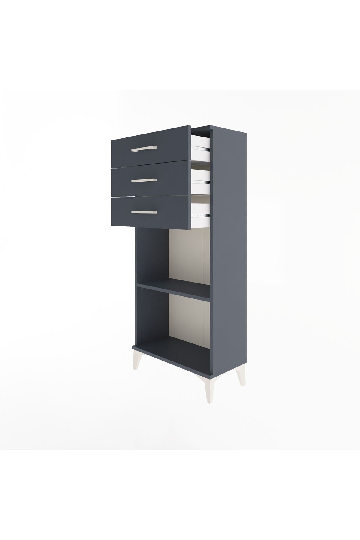 Arges Dolap Tek Raflı 3 Çekmeceli 60x30x134 Antrasit-Antrasit