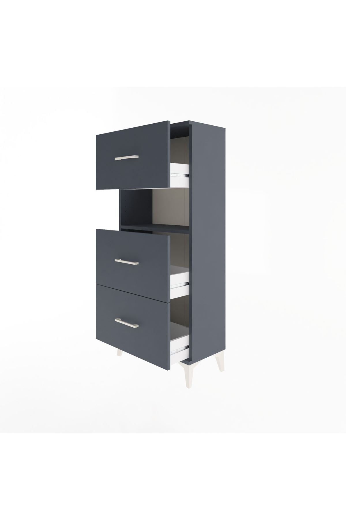 Arges Dolap Tek Raflı 3 Çekmeceli 60x30x134 Antrasit-Antrasit