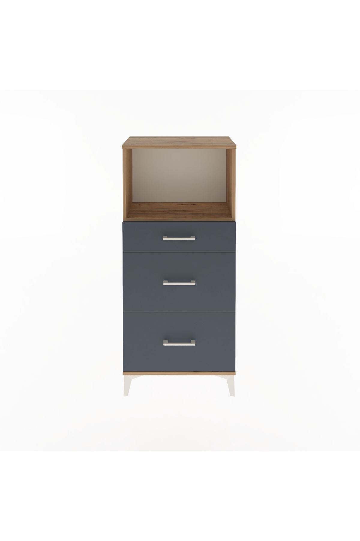Arges Dolap Tek Raflı 3 Çekmeceli 60x30x134 Çam-Antrasit