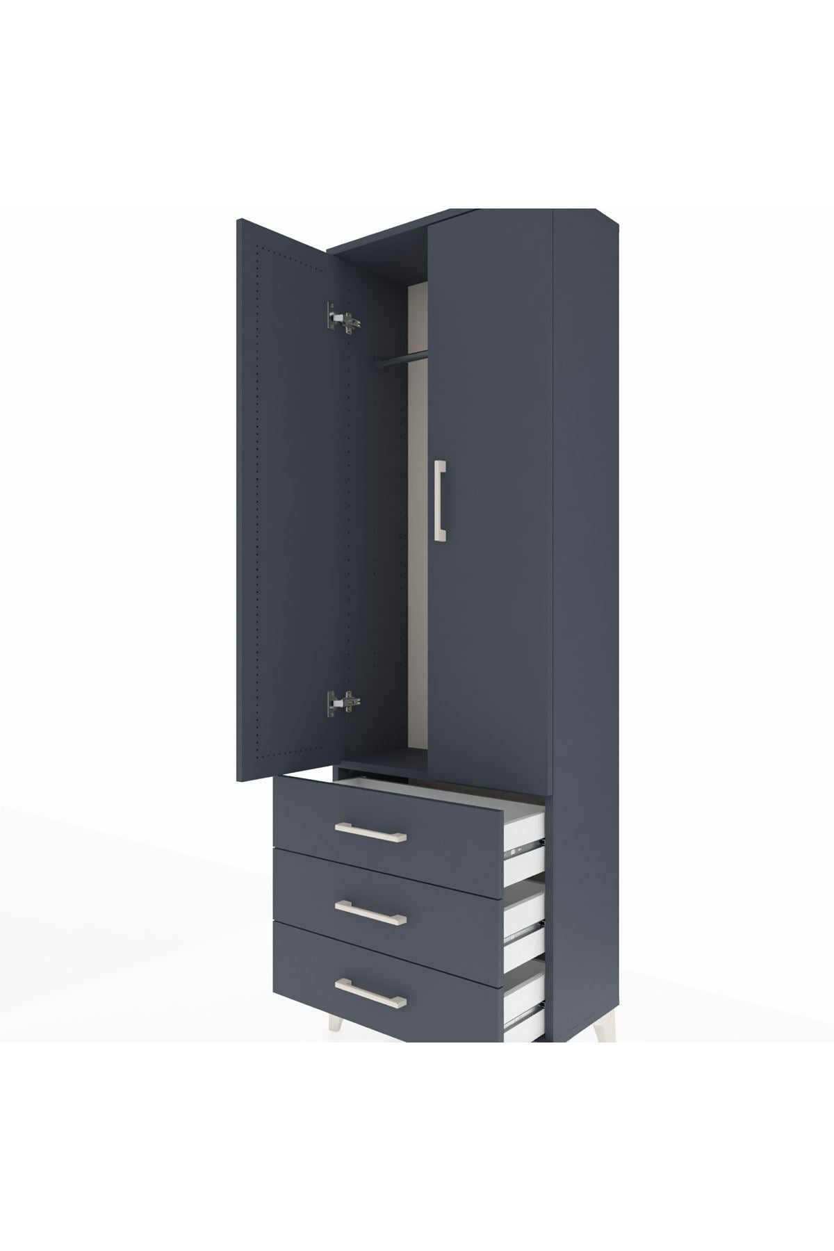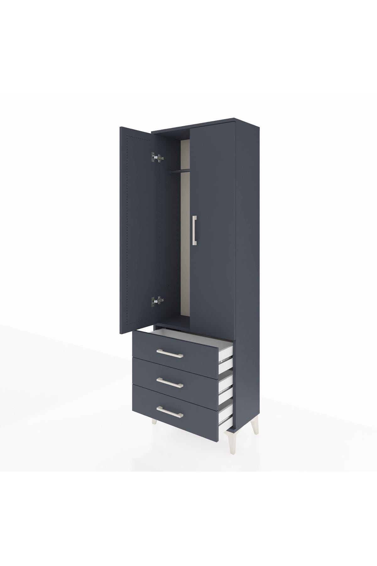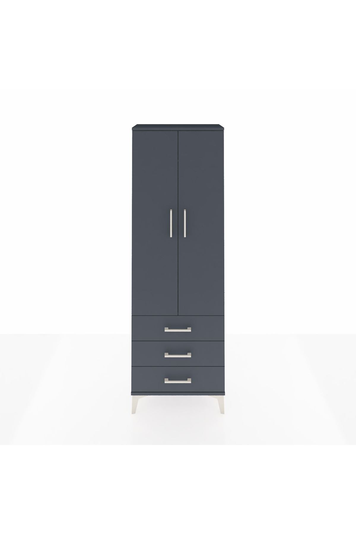 Arges Dolap Tek Raflı 3 Çekmeceli Tek Askılı 60x30x182 Antrasit-Antrasit