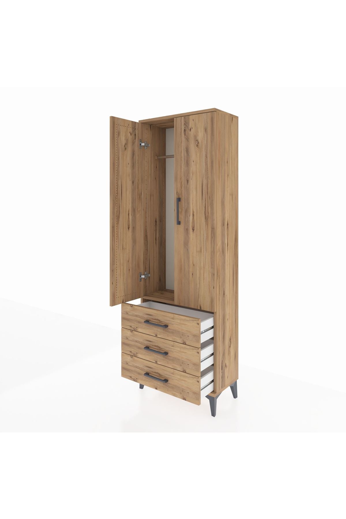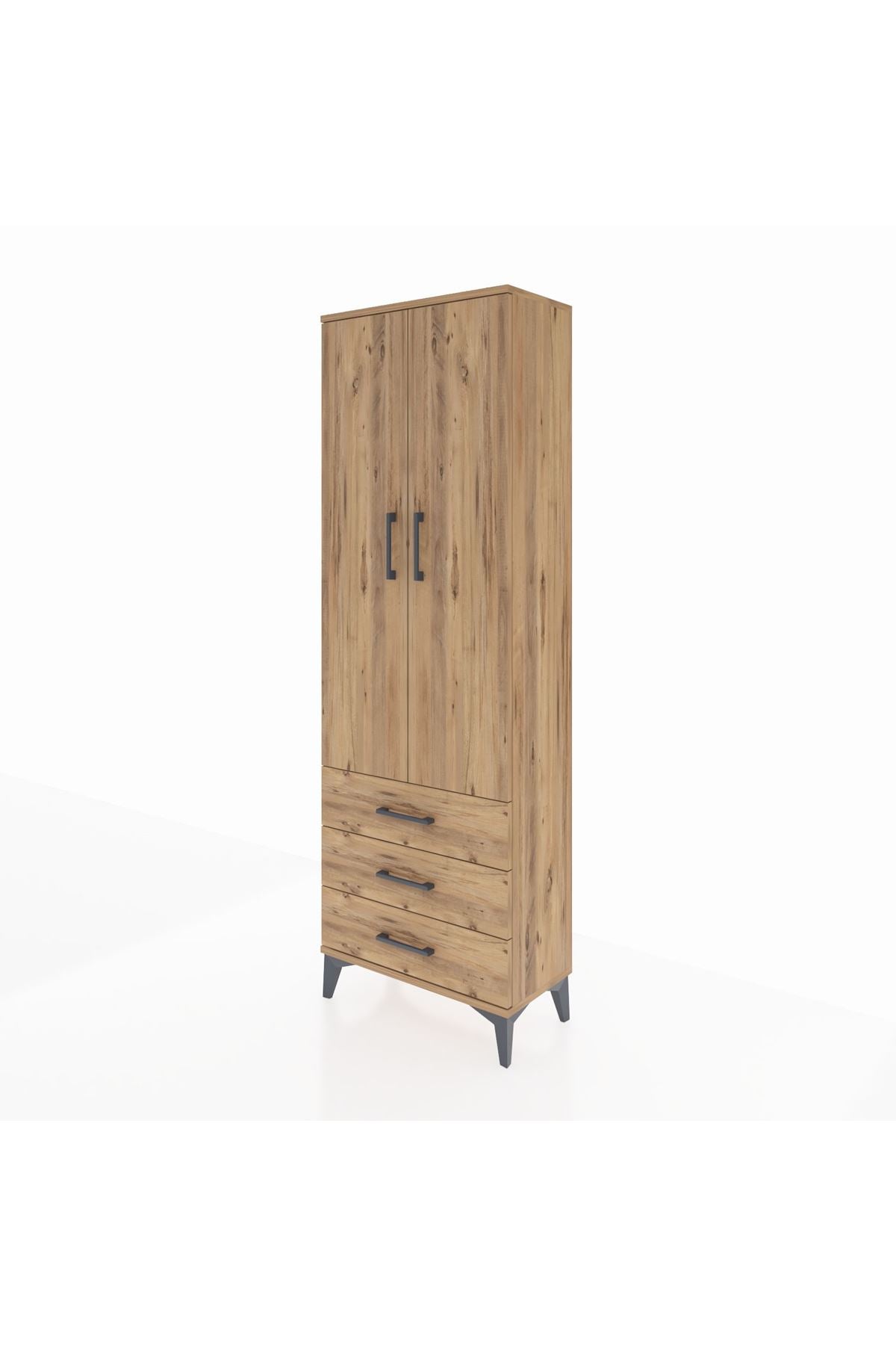Arges Dolap Tek Raflı 3 Çekmeceli Tek Askılı 60x30x182 Çam-Çam