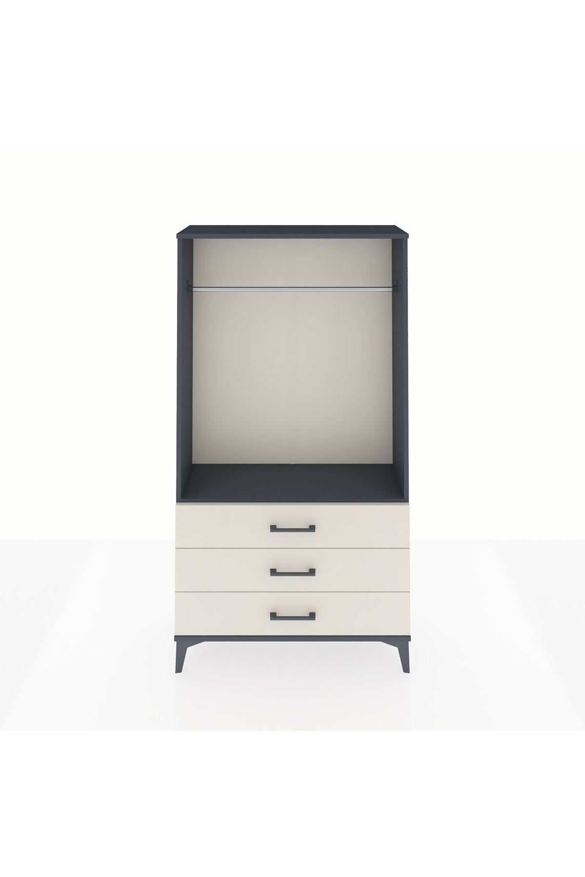 Arges Dolap Tek Raflı 3 Çekmeceli Tek Askılı 88x30x163 Antrasit-Aytaşı