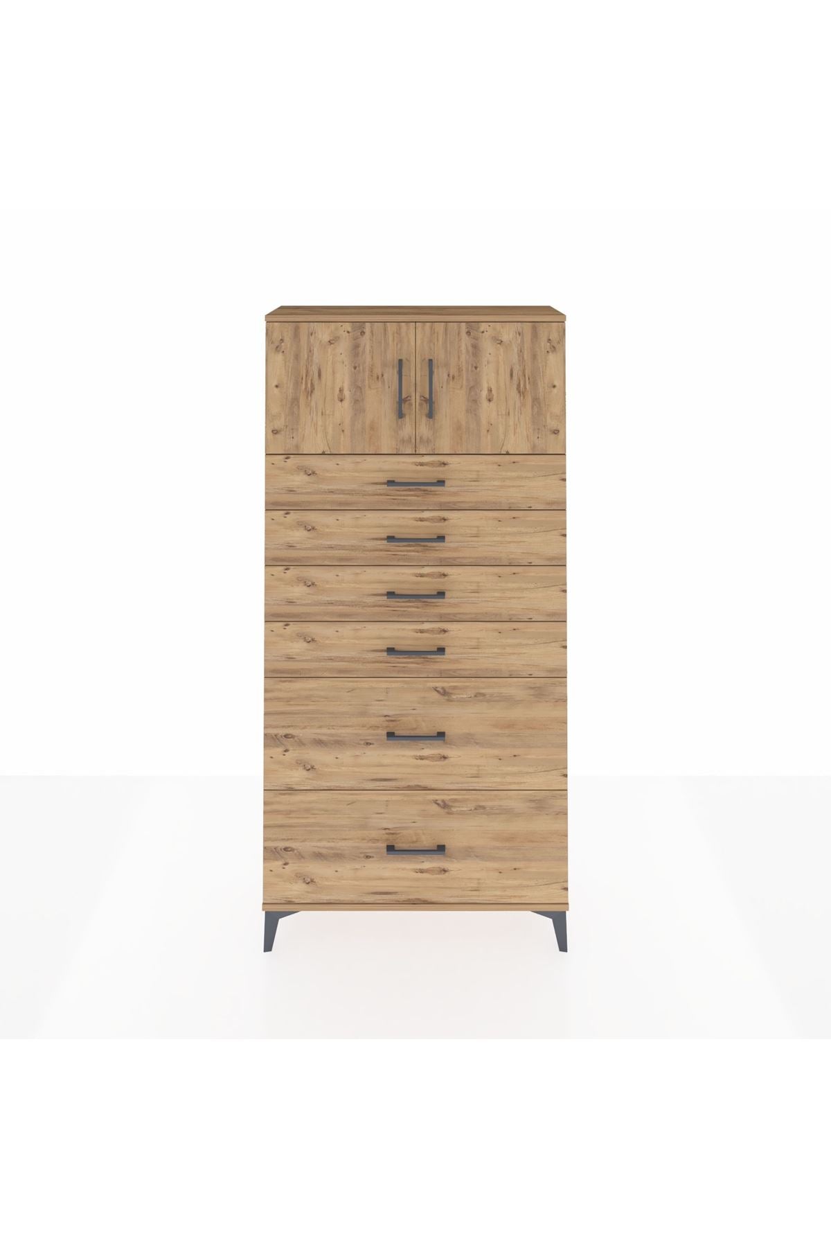 Arges Dolap Tek Raflı 6 Çekmeceli 2 Kapaklı 88x30x182 Çam-Çam