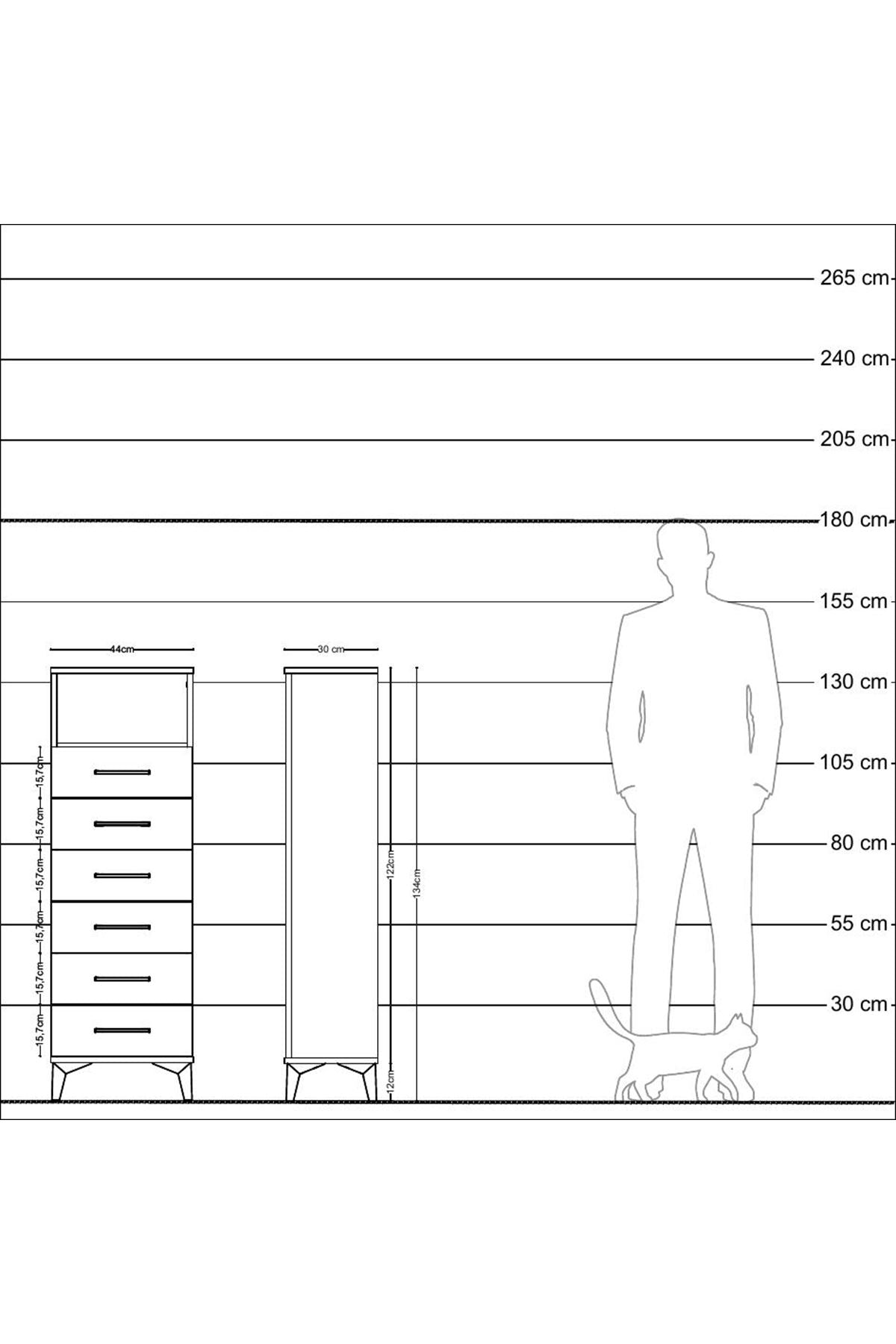 Arges Dolap Tek Raflı 6 Çekmeceli 44x30x134 Antrasit-Çam