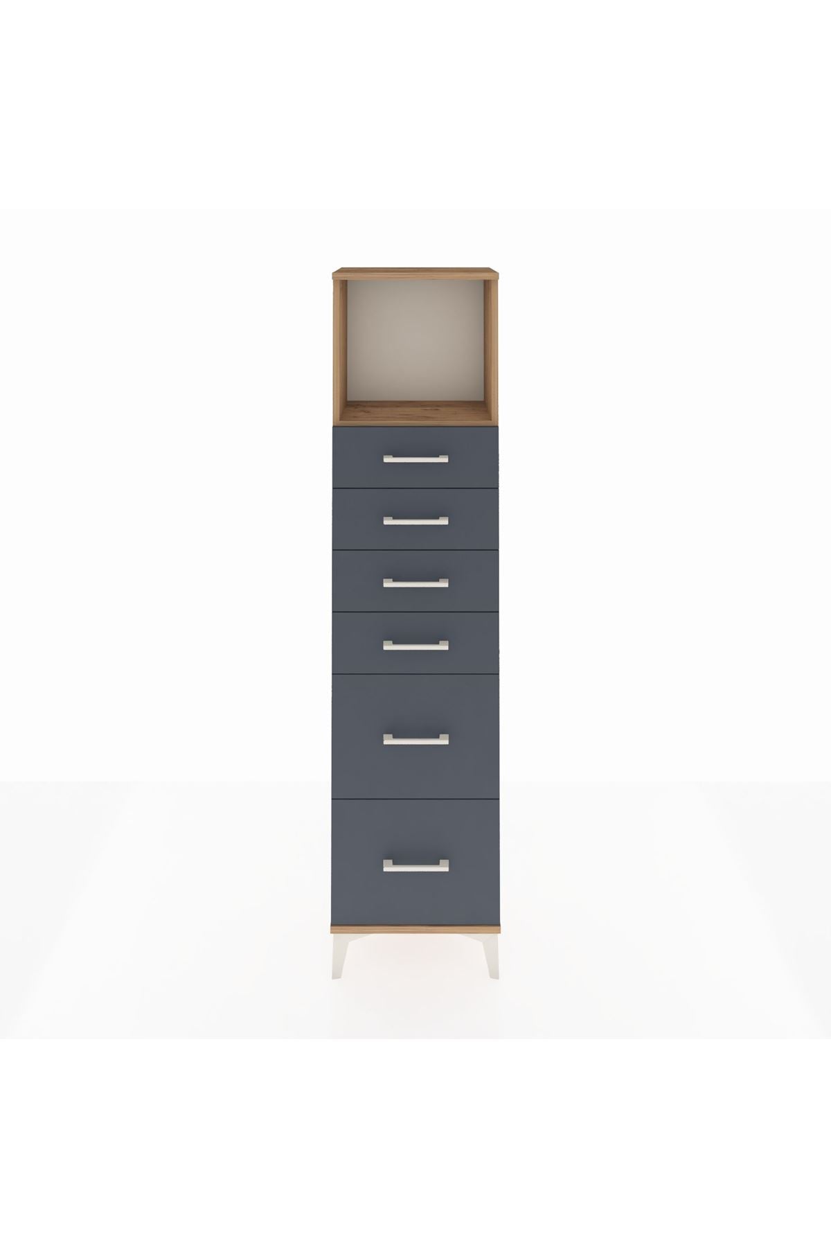 Arges Dolap Tek Raflı 6 Çekmeceli 44x30x182 Çam-Antrasit