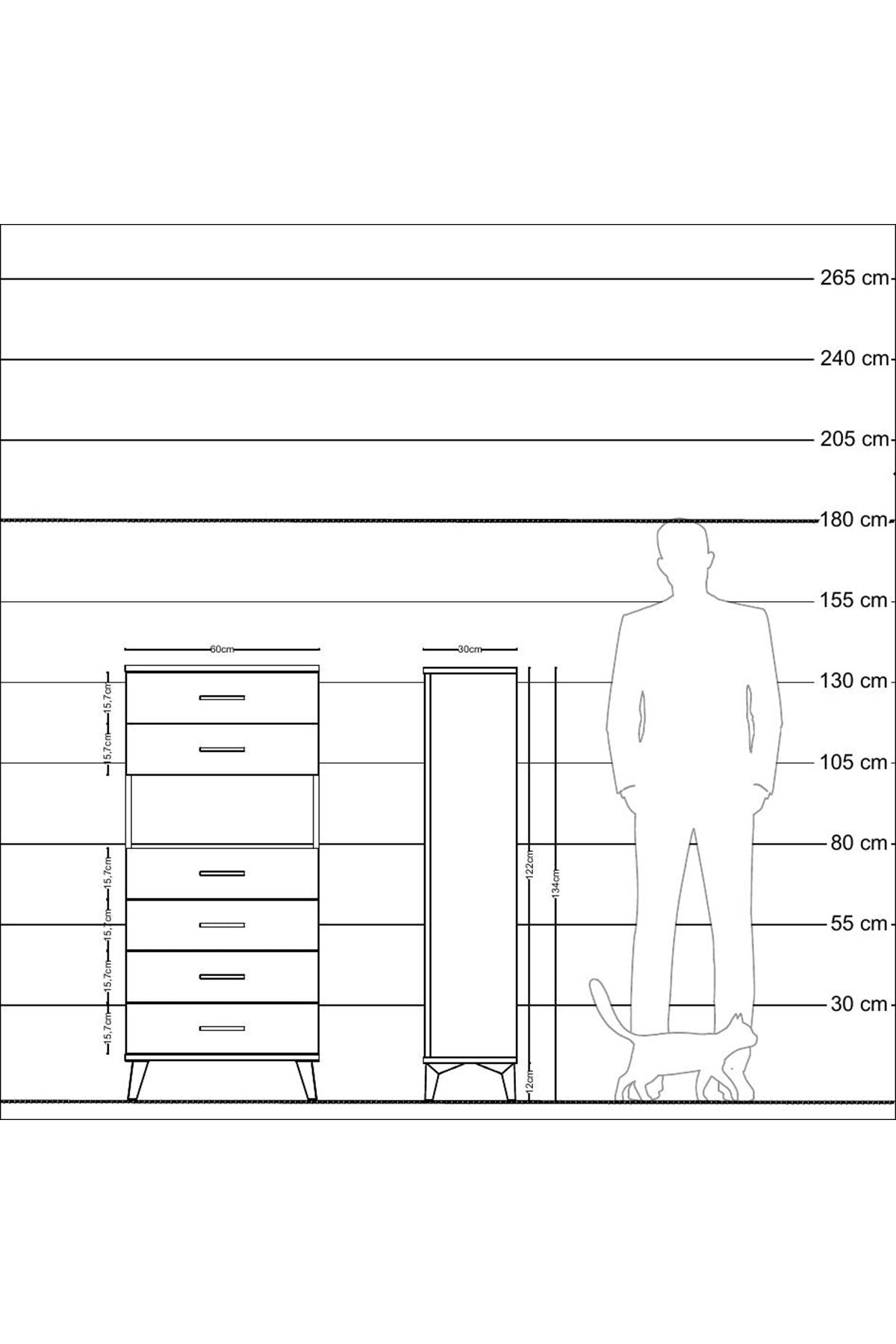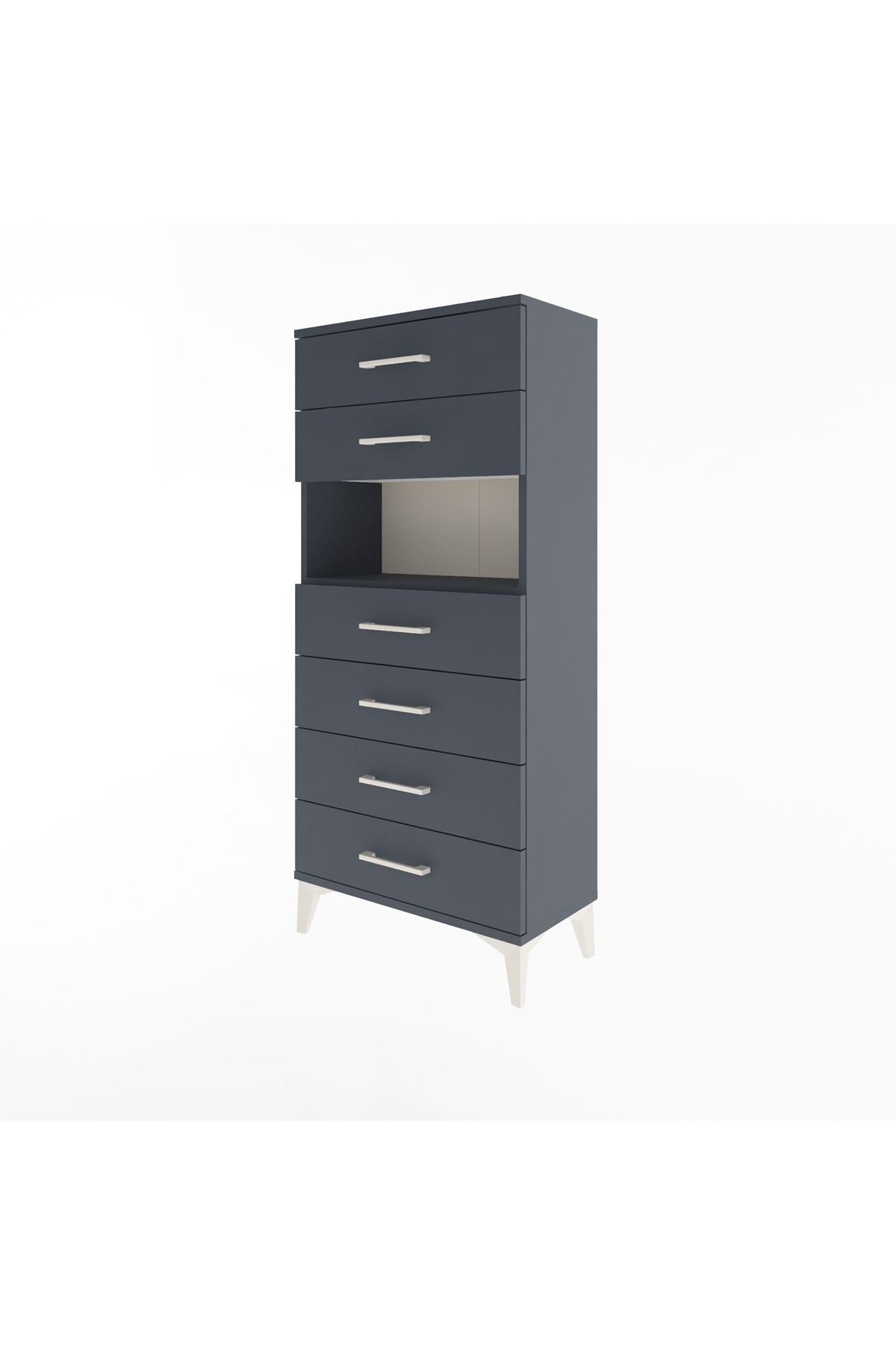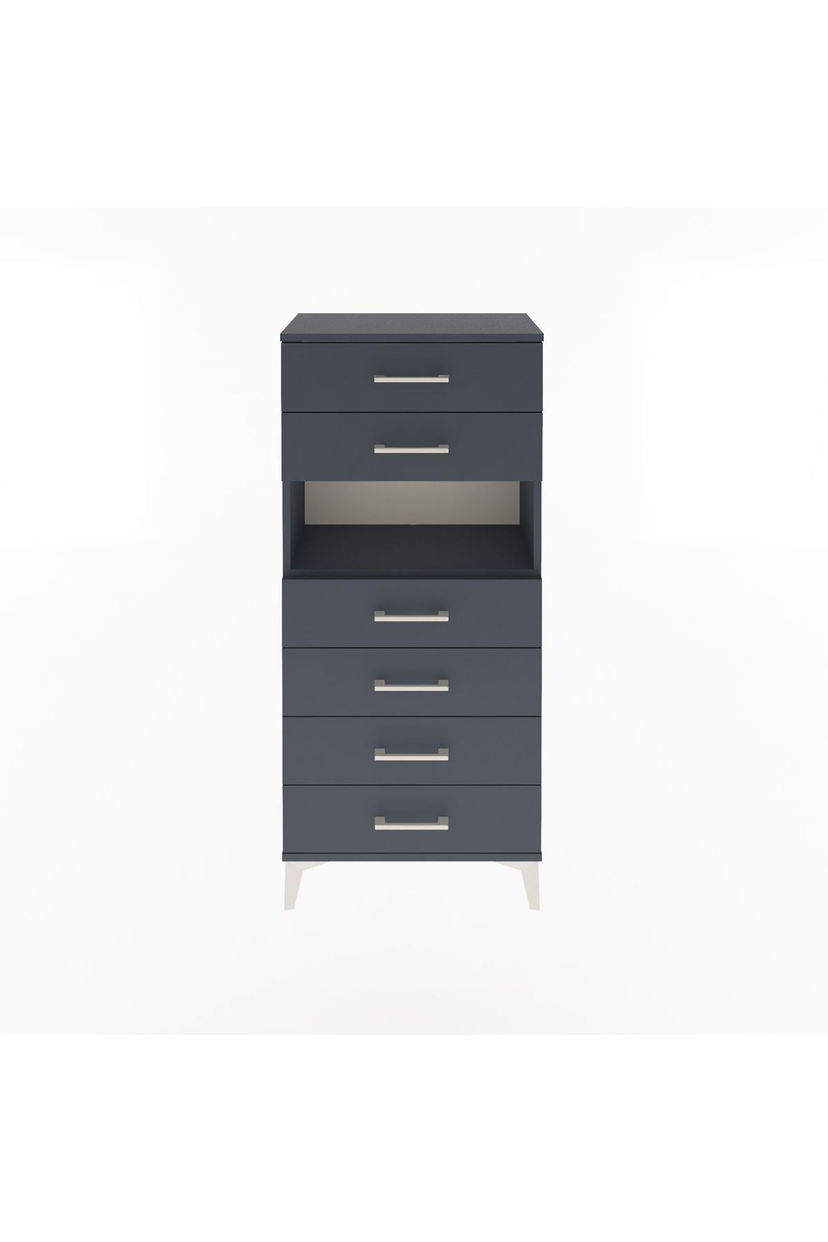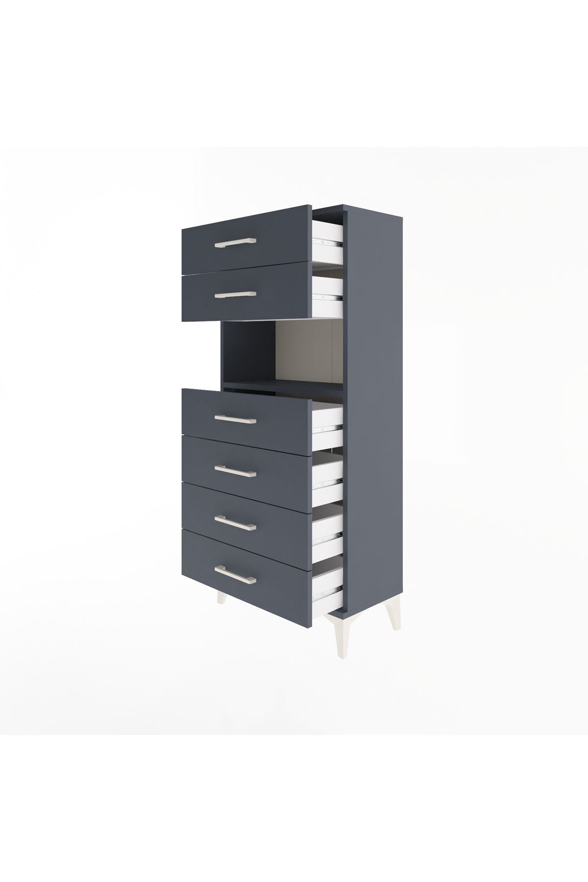 Arges Dolap Tek Raflı 6 Çekmeceli 60x30x134 Antrasit-Antrasit