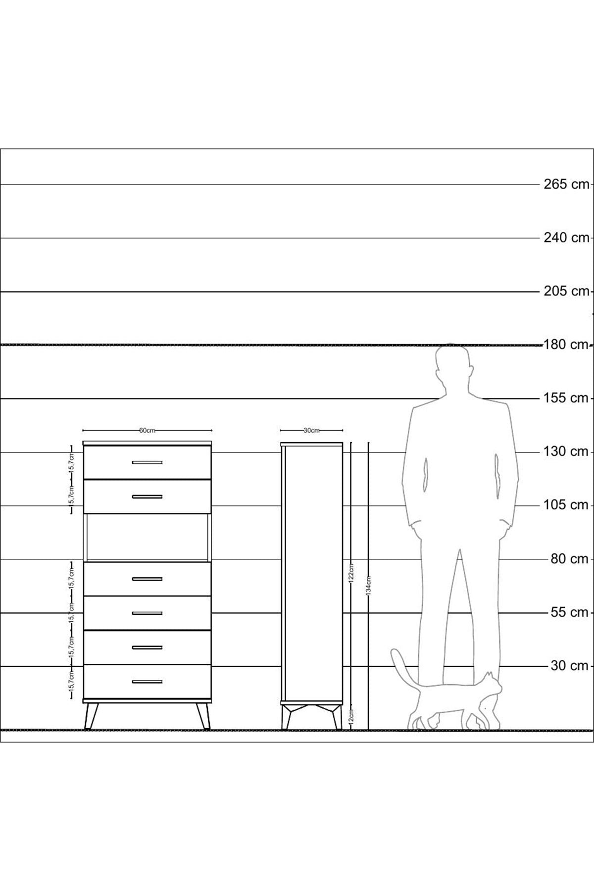 Arges Dolap Tek Raflı 6 Çekmeceli 60x30x134 Aytaşı-Çam