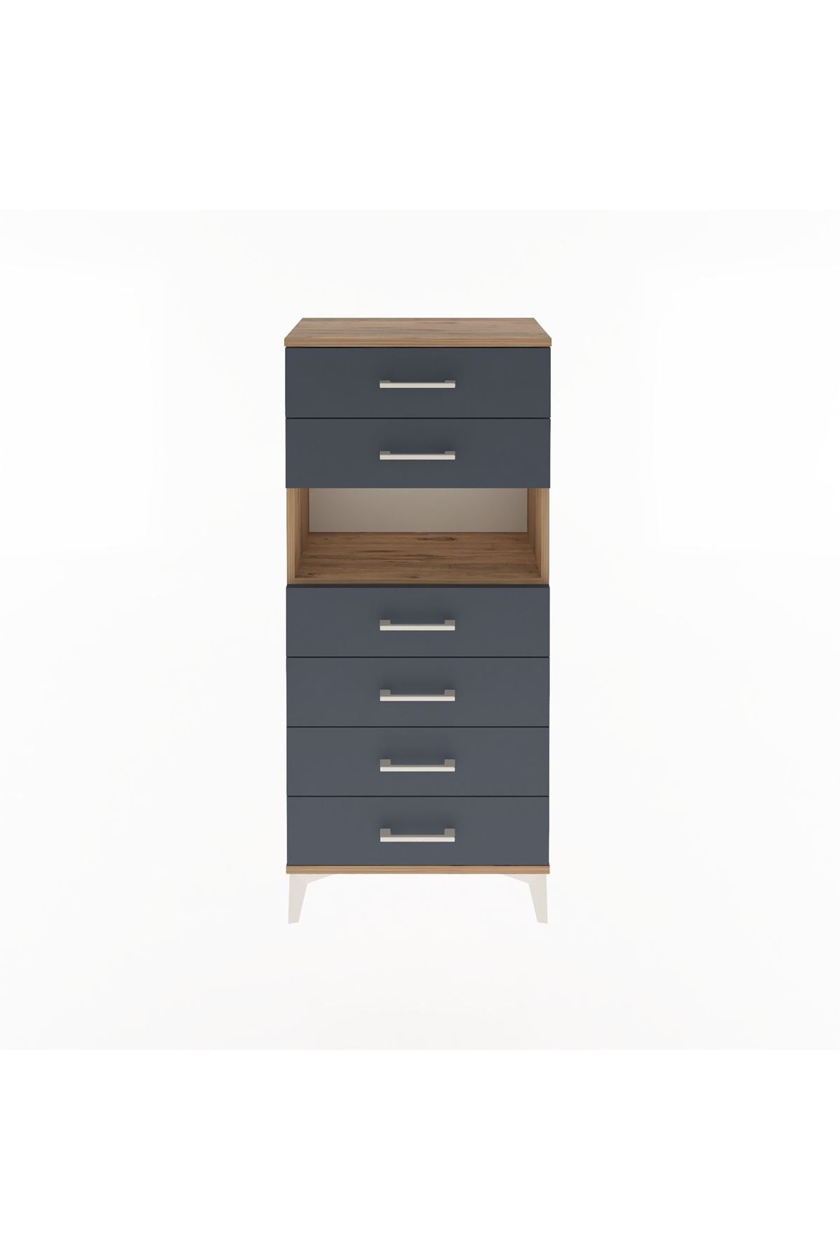 Arges Dolap Tek Raflı 6 Çekmeceli 60x30x134 Çam-Antrasit