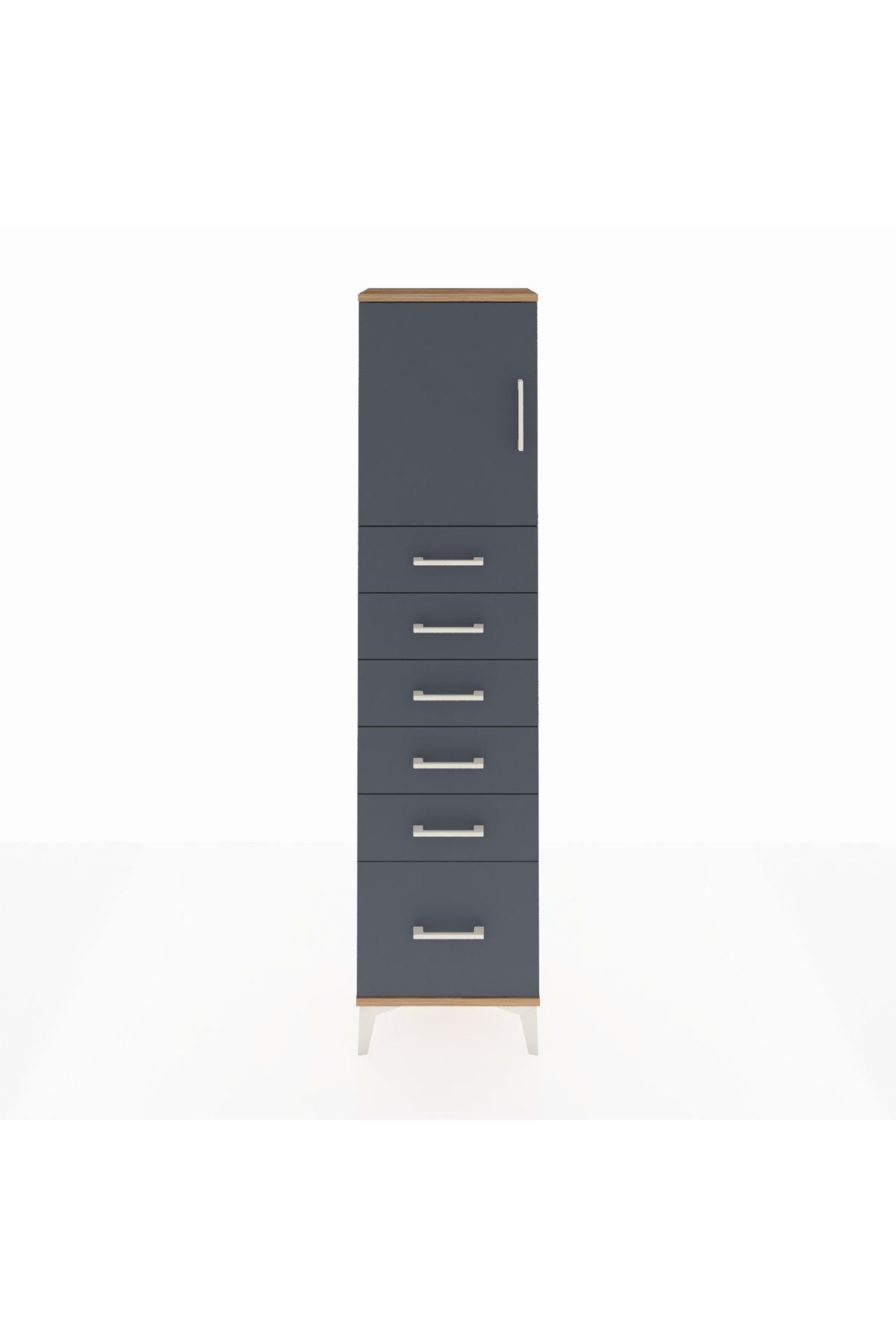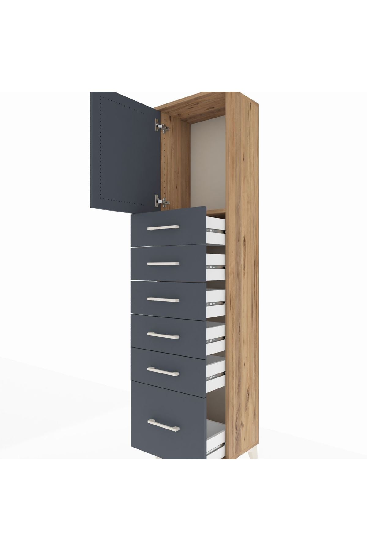 Arges Dolap Tek Raflı 6 Çekmeceli Tek Kapaklı 44x30x182 Çam-Antrasit