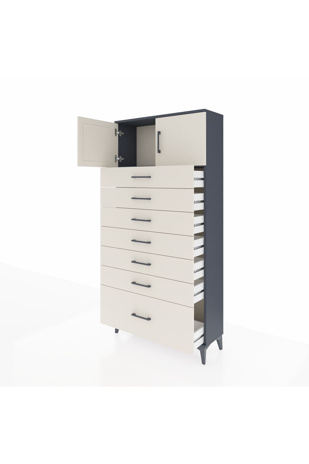 Arges Dolap Tek Raflı 7 Çekmeceli 2 Kapaklı 88x30x182 Antrasit-Aytaşı