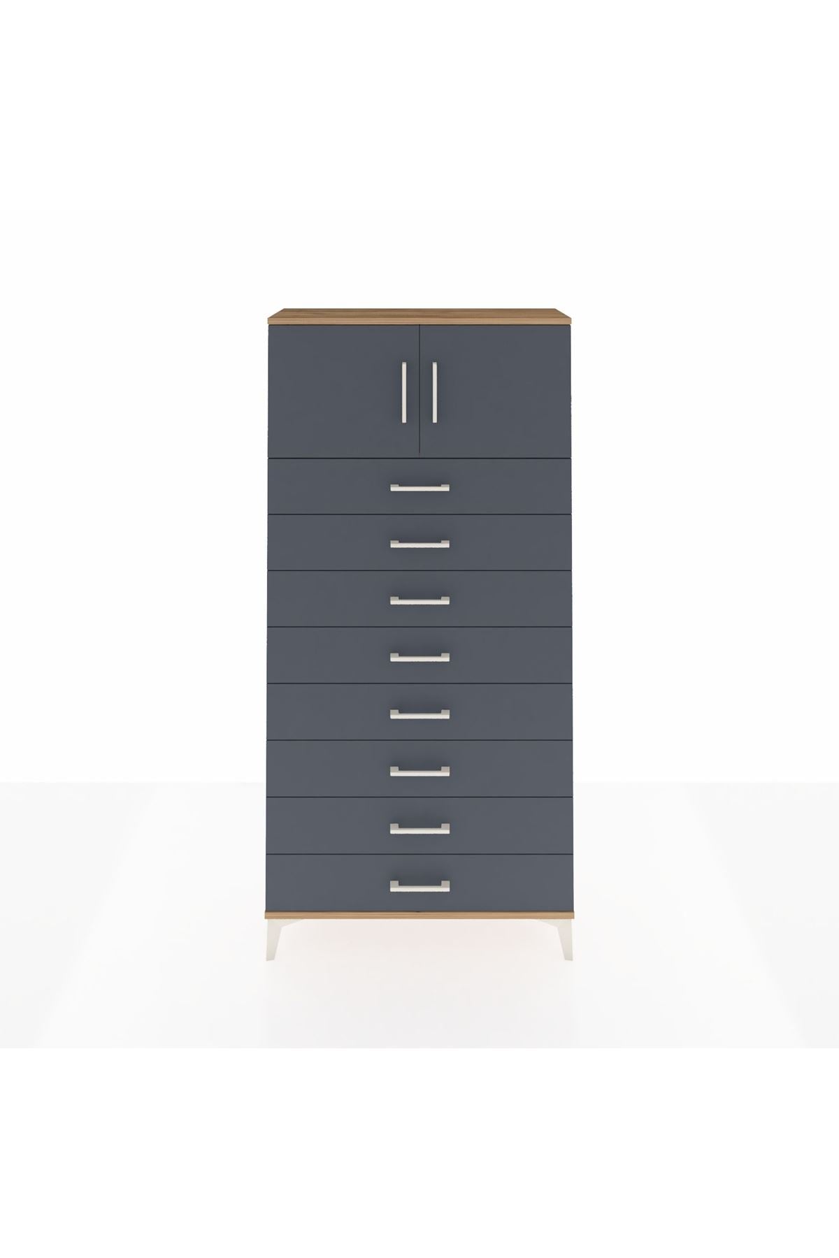 Arges Dolap Tek Raflı 8 Çekmeceli 2 Kapaklı 88x30x182 Çam-Antrasit