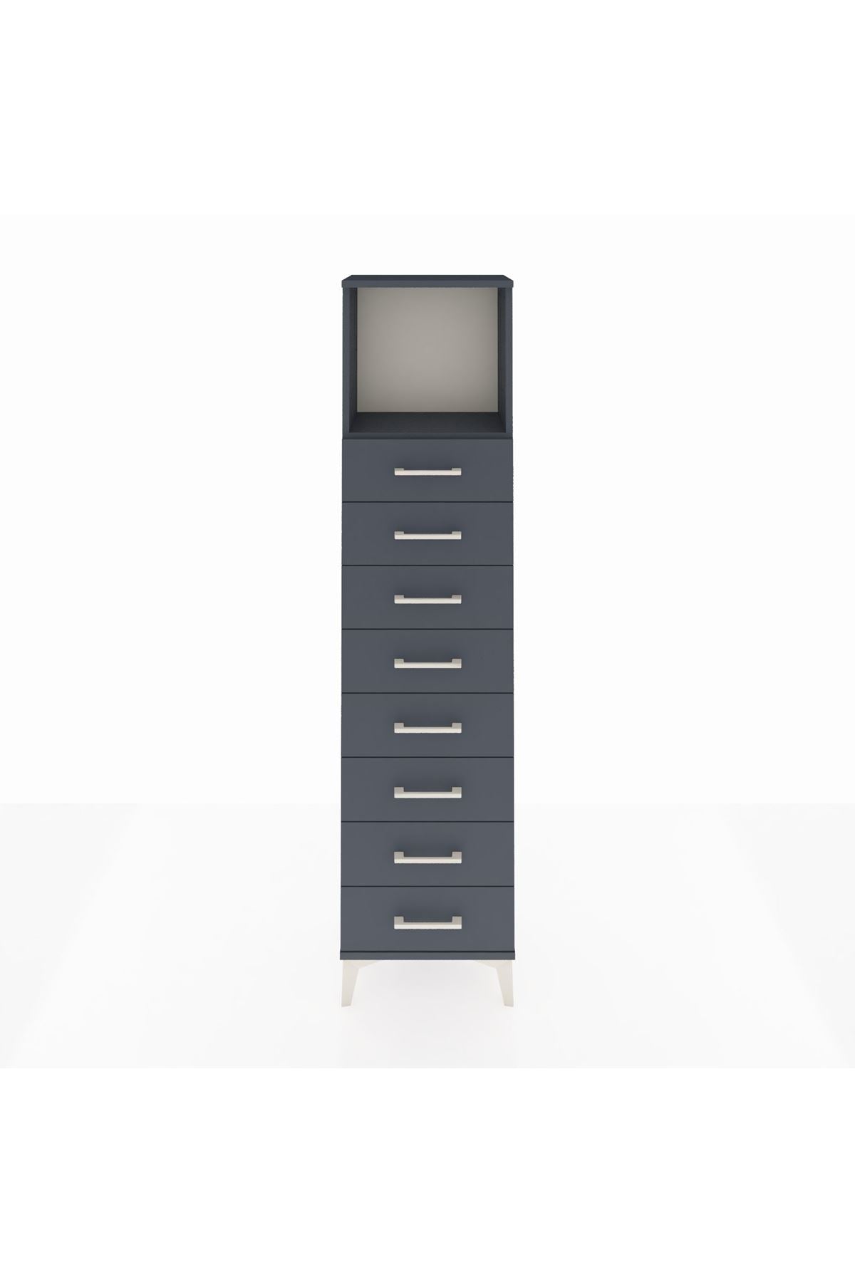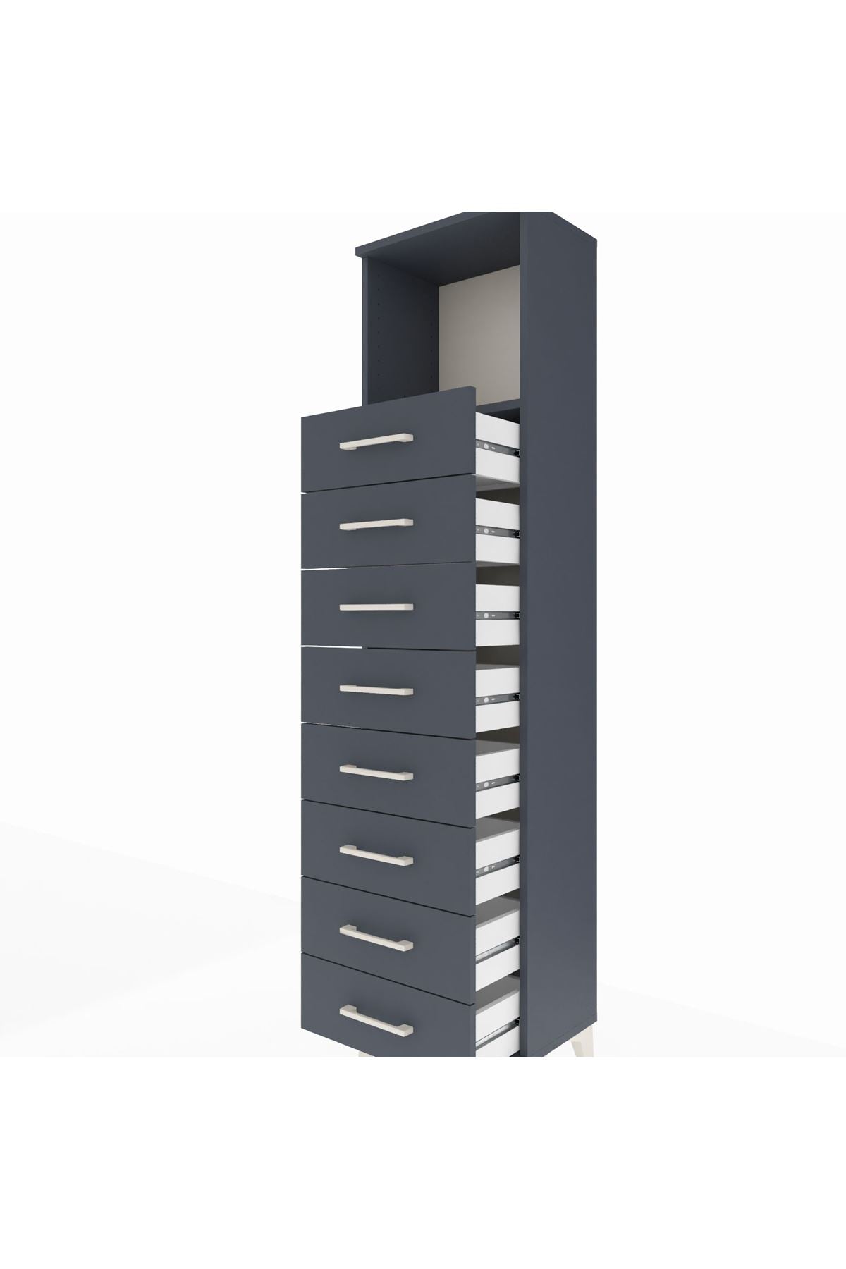 Arges Dolap Tek Raflı 8 Çekmeceli 44x30x182 Antrasit-Antrasit