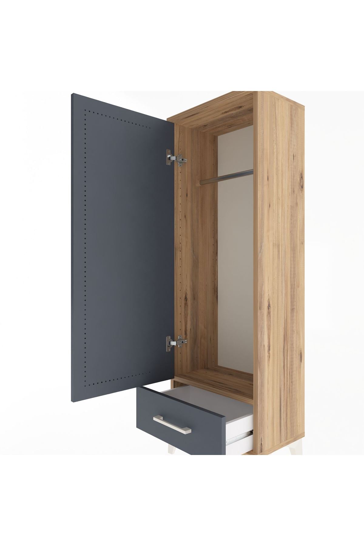 Arges Dolap Tek Raflı Tek Çekmeceli Tek Askılı 44x30x134 Çam-Antrasit