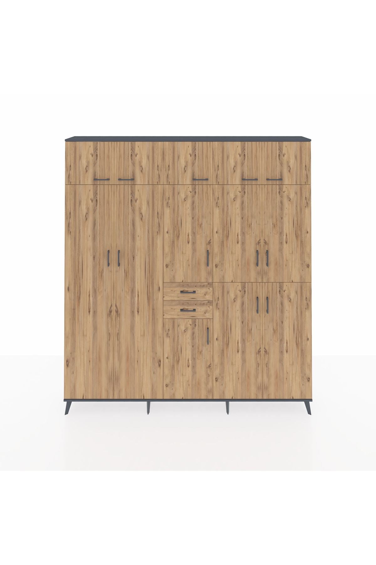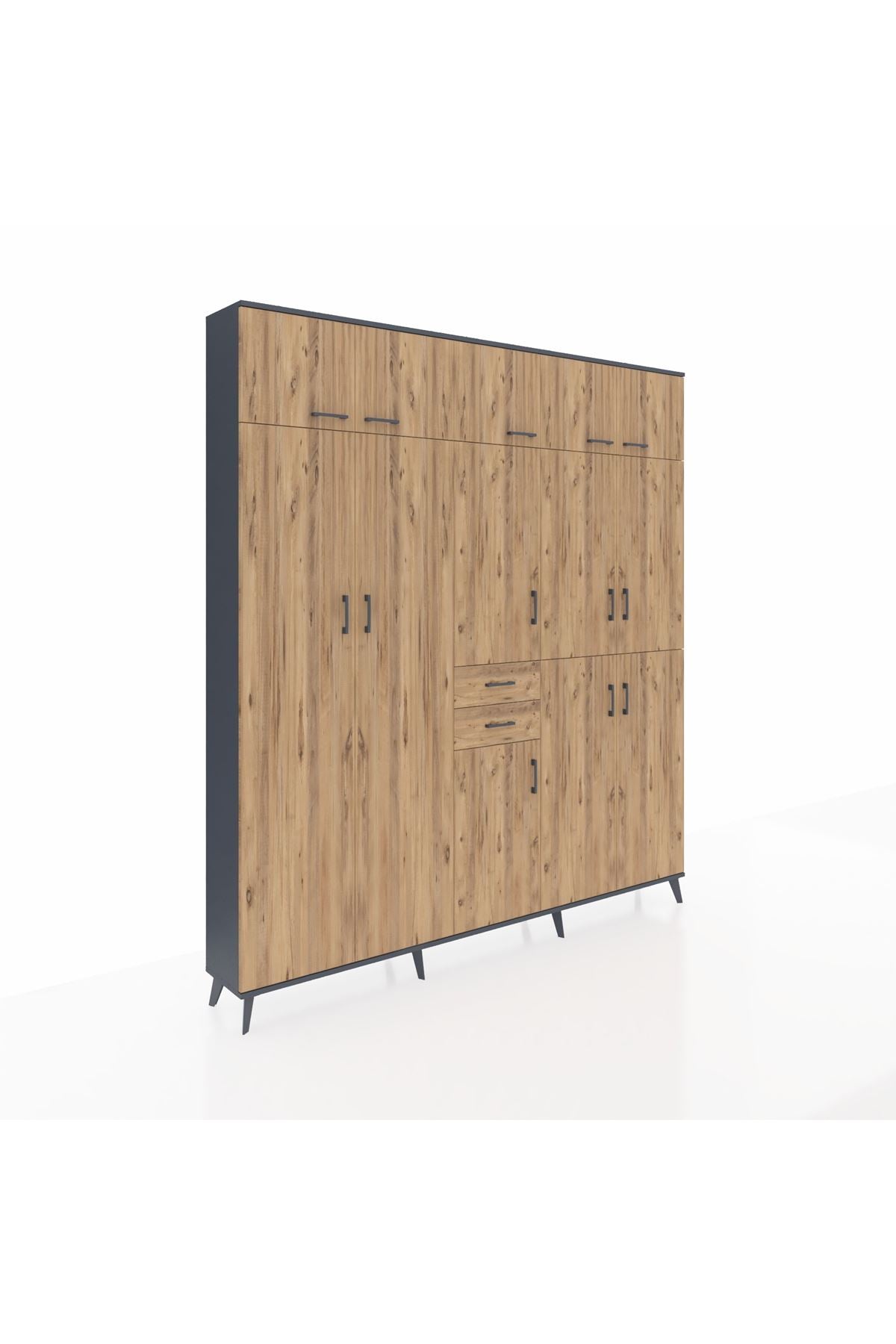 Arges Gardrop 10 Raflı 2 Çekmeceli 3 Askılı 220x30x243 Antrasit-Çam