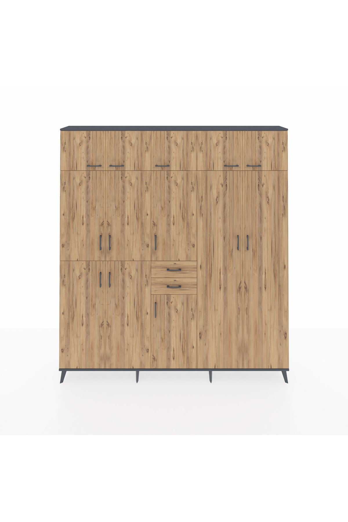 Arges Gardrop 10 Raflı 2 Çekmeceli 3 Askılı 220x30x243 Antrasit-Çam