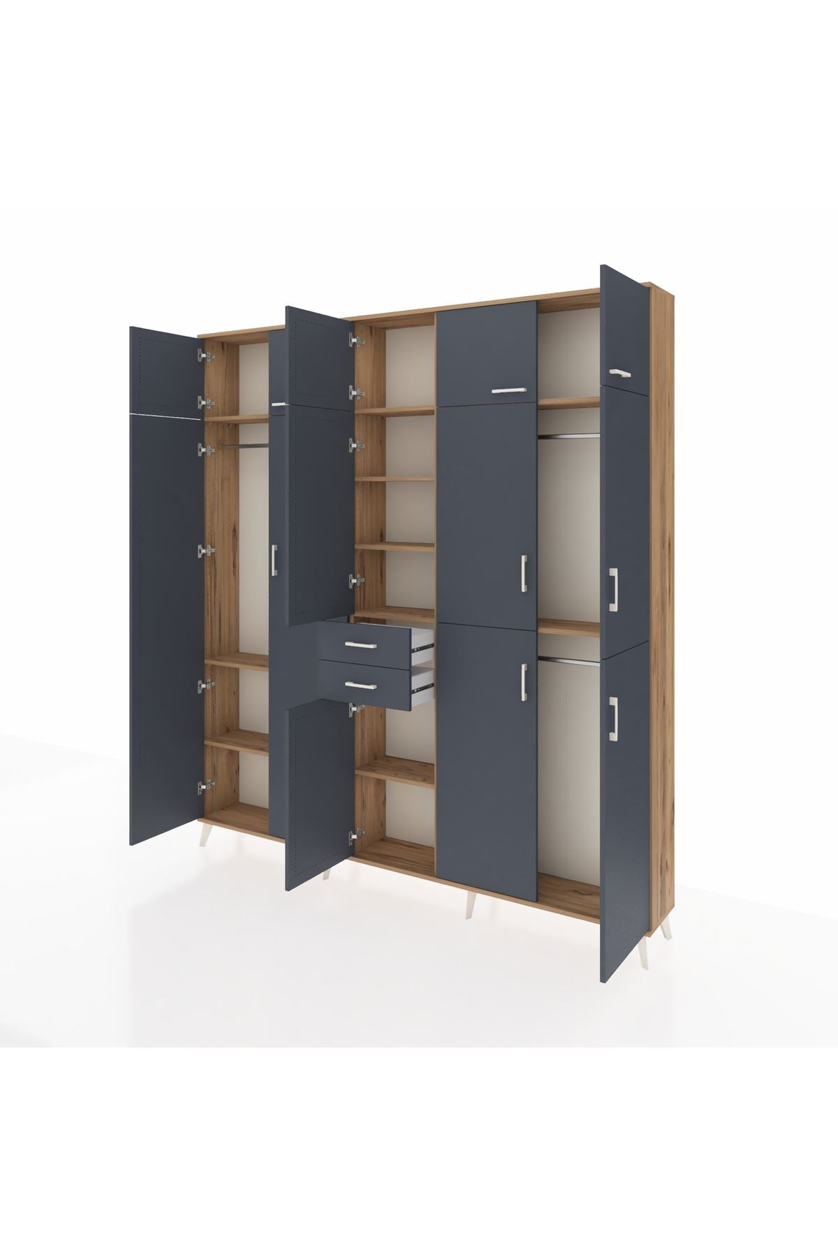 Arges Gardrop 10 Raflı 2 Çekmeceli 3 Askılı 220x30x243 Çam-Antrasit