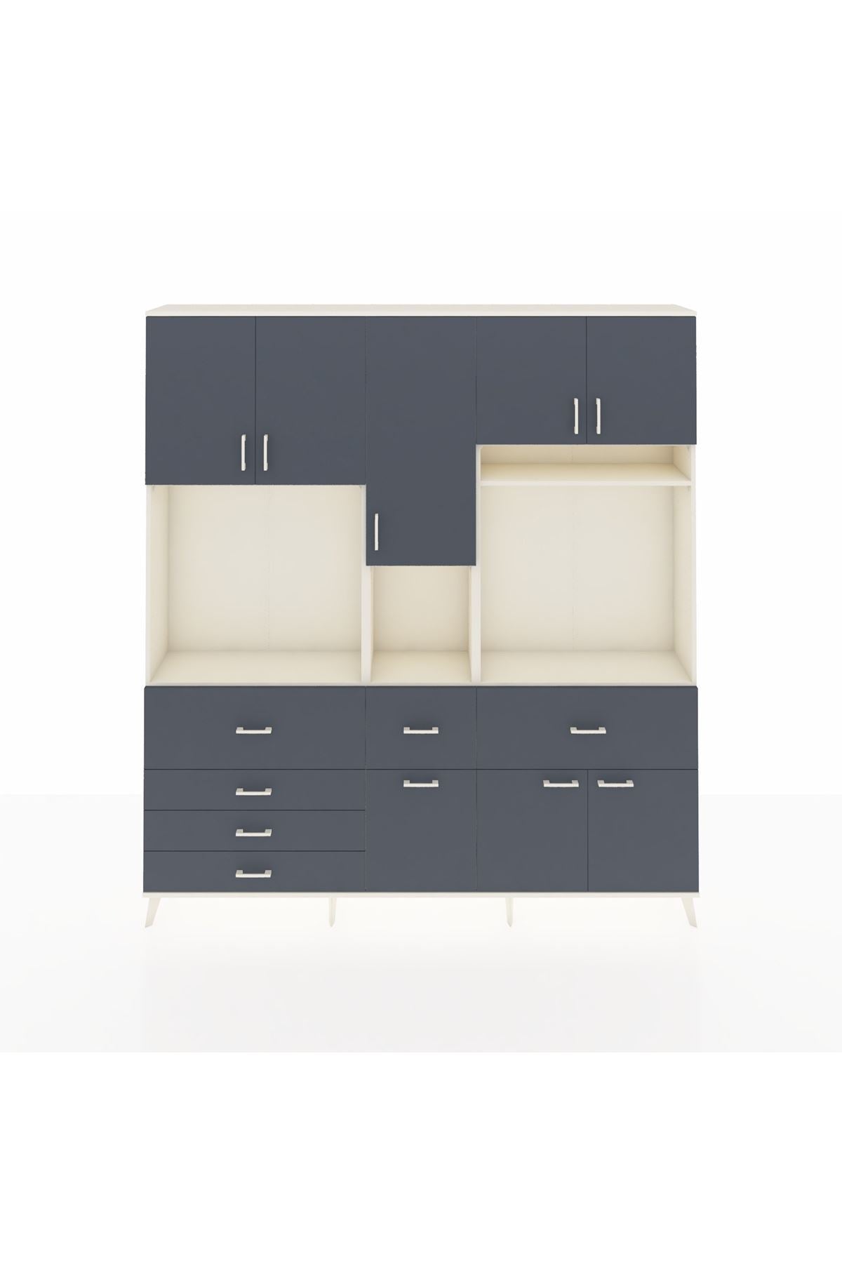 Arges Gardrop 10 Raflı 6 Çekmeceli 8 Kapaklı 220x30x243 Aytaşı-Antrasit