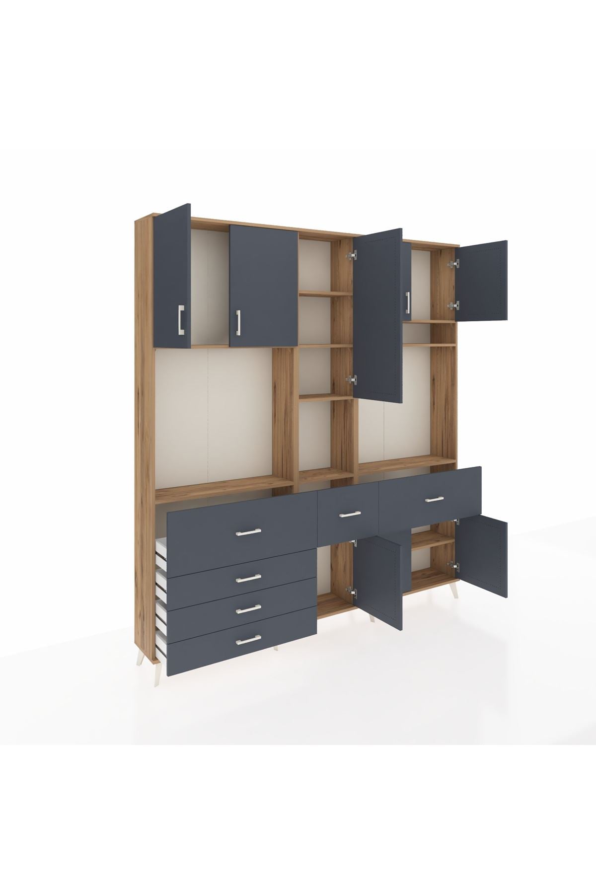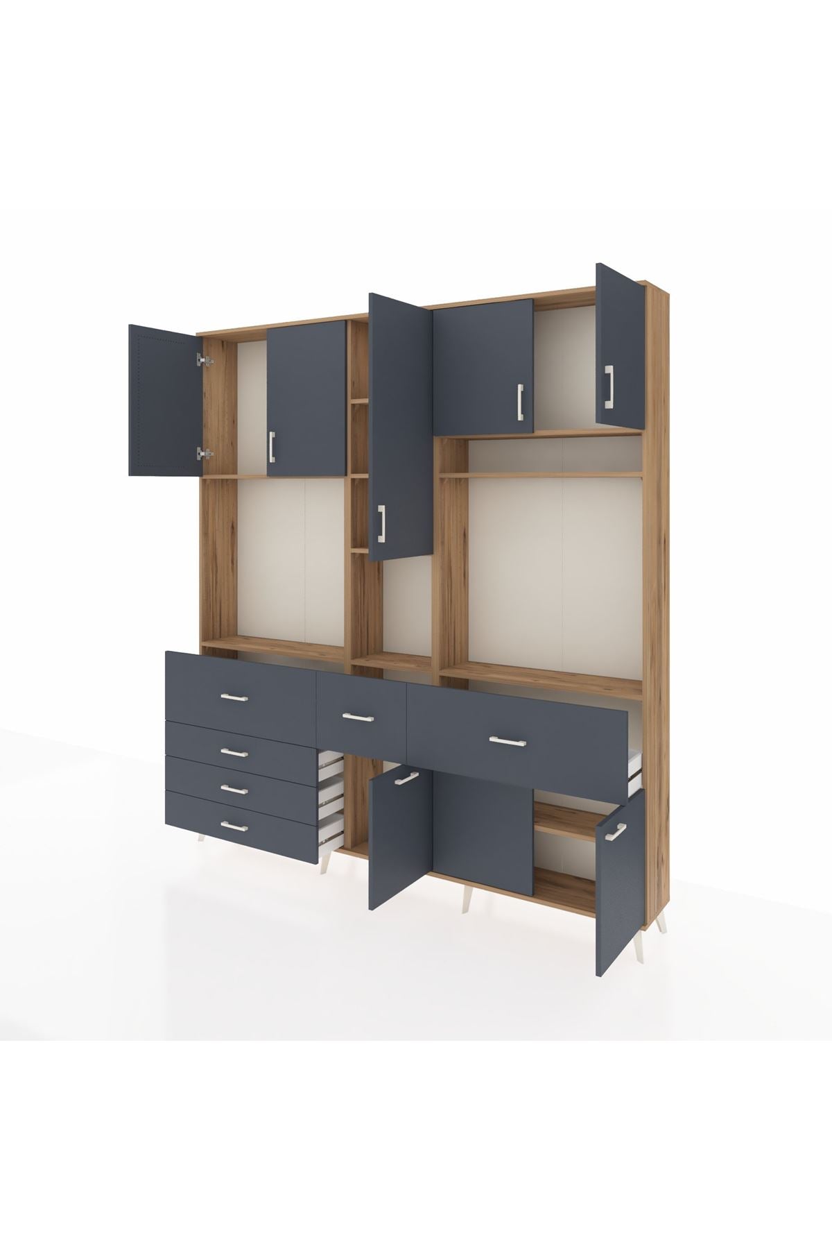Arges Gardrop 10 Raflı 6 Çekmeceli 8 Kapaklı 220x30x243 Çam-Antrasit