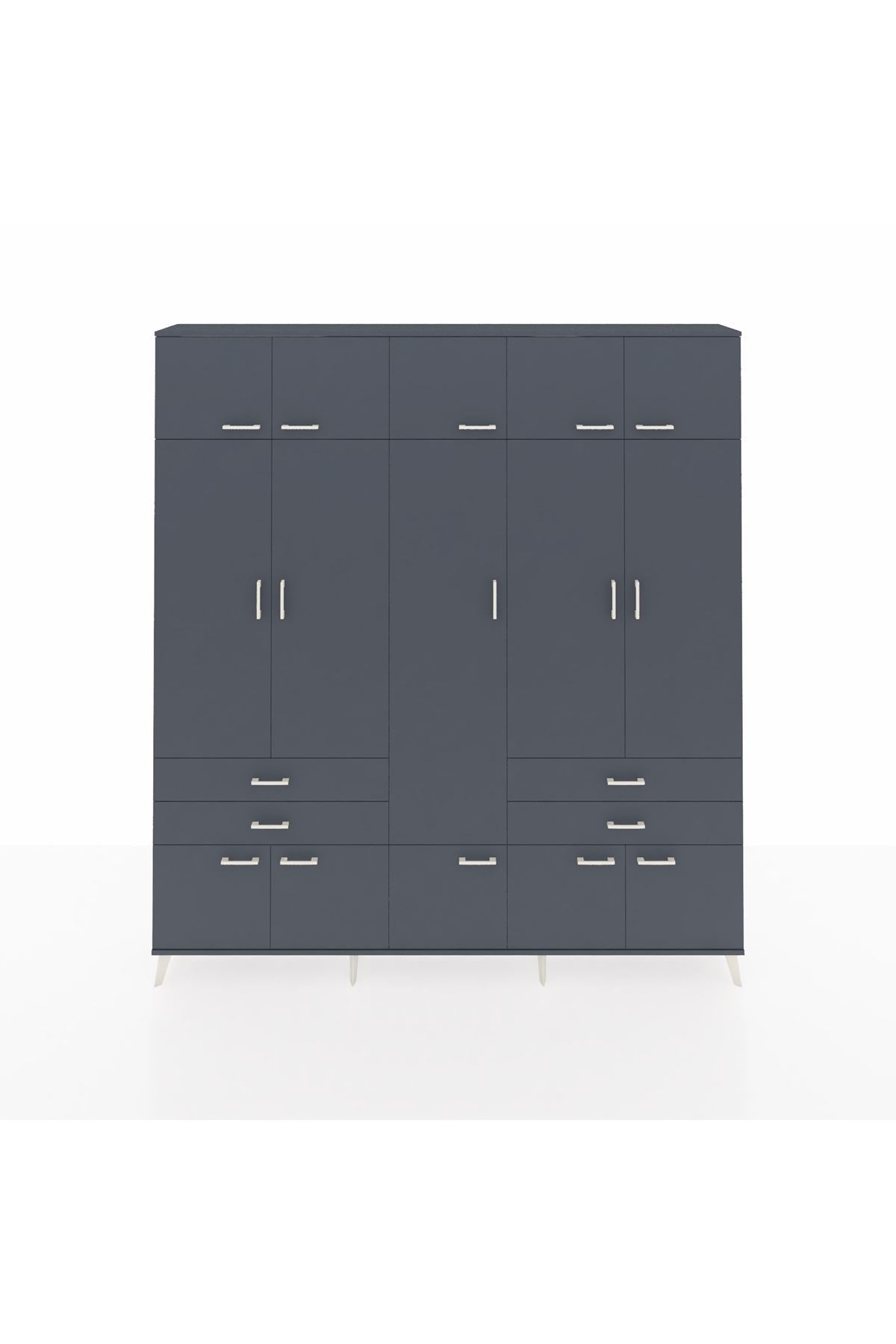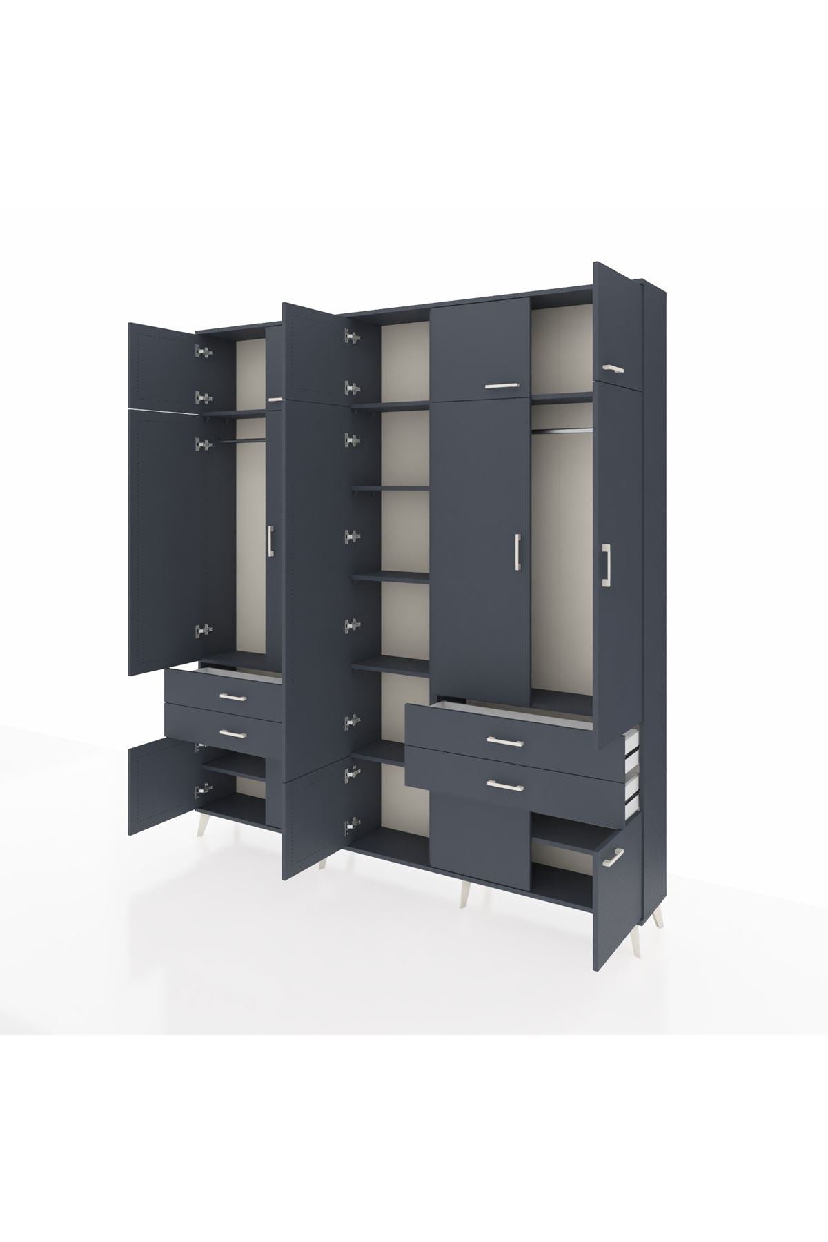 Arges Gardrop 11 Raflı 4 Çekmeceli 2 Askılı 220x30x243 Antrasit-Antrasit