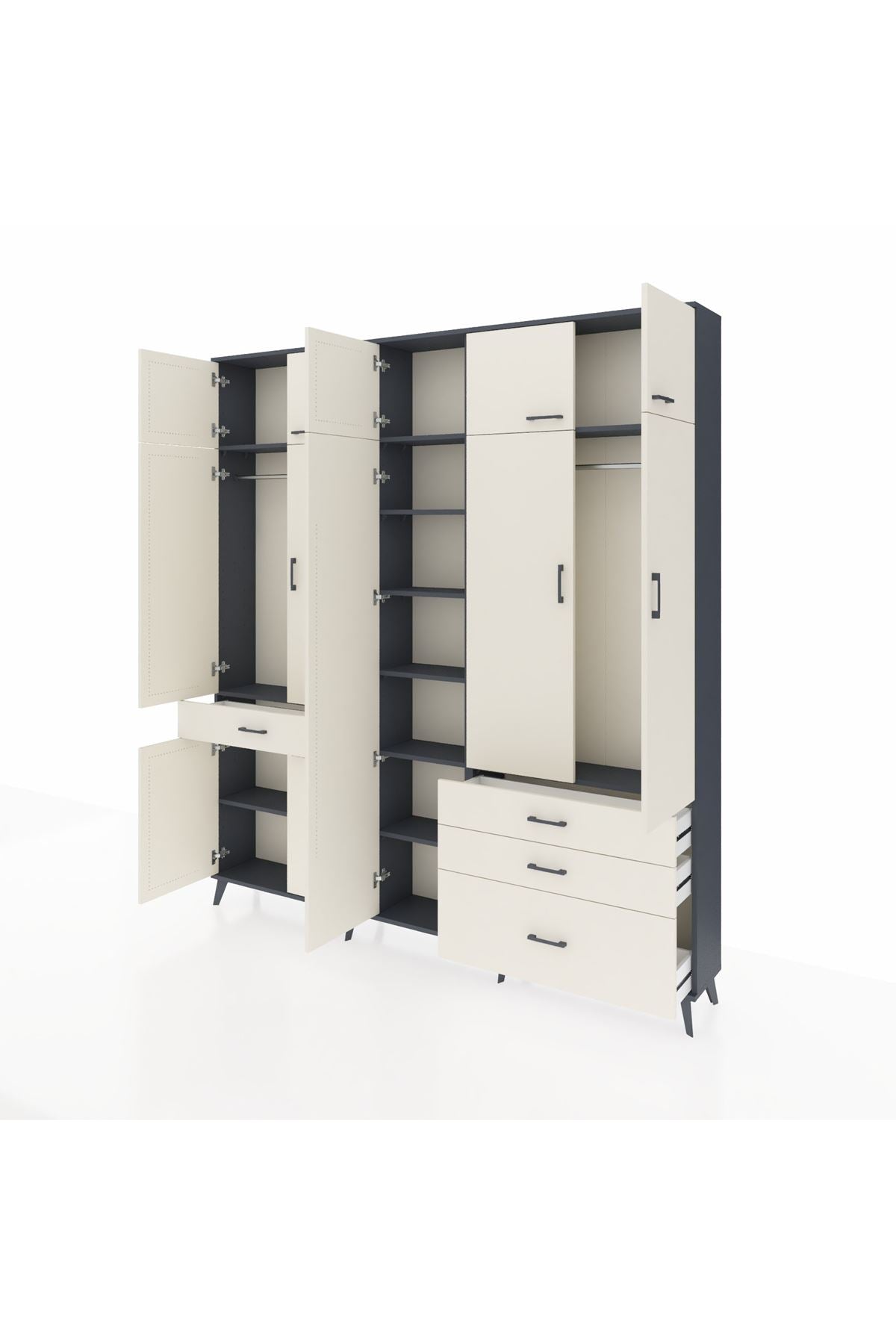 Arges Gardrop 11 Raflı 4 Çekmeceli 2 Askılı 220x30x243 Antrasit-Aytaşı