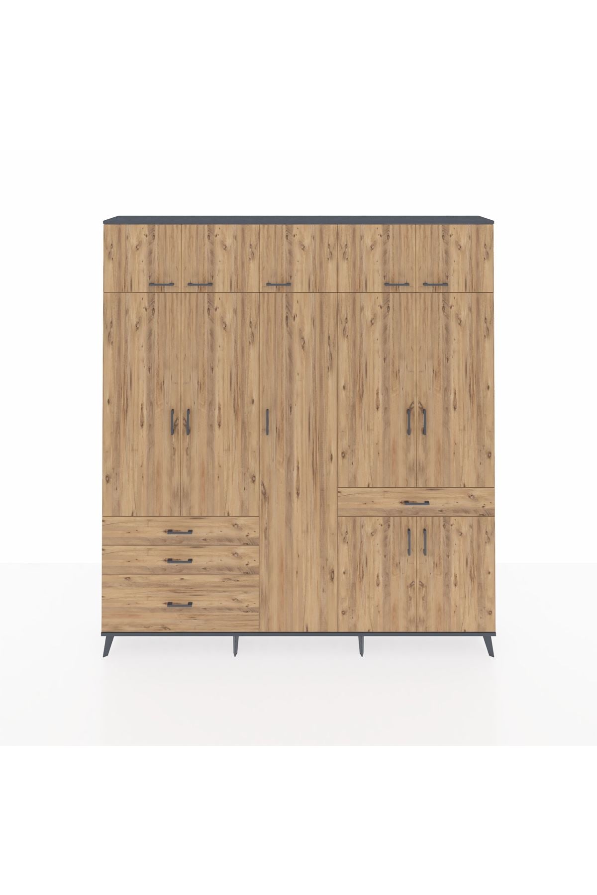 Arges Gardrop 11 Raflı 4 Çekmeceli 2 Askılı 220x30x243 Antrasit-Çam