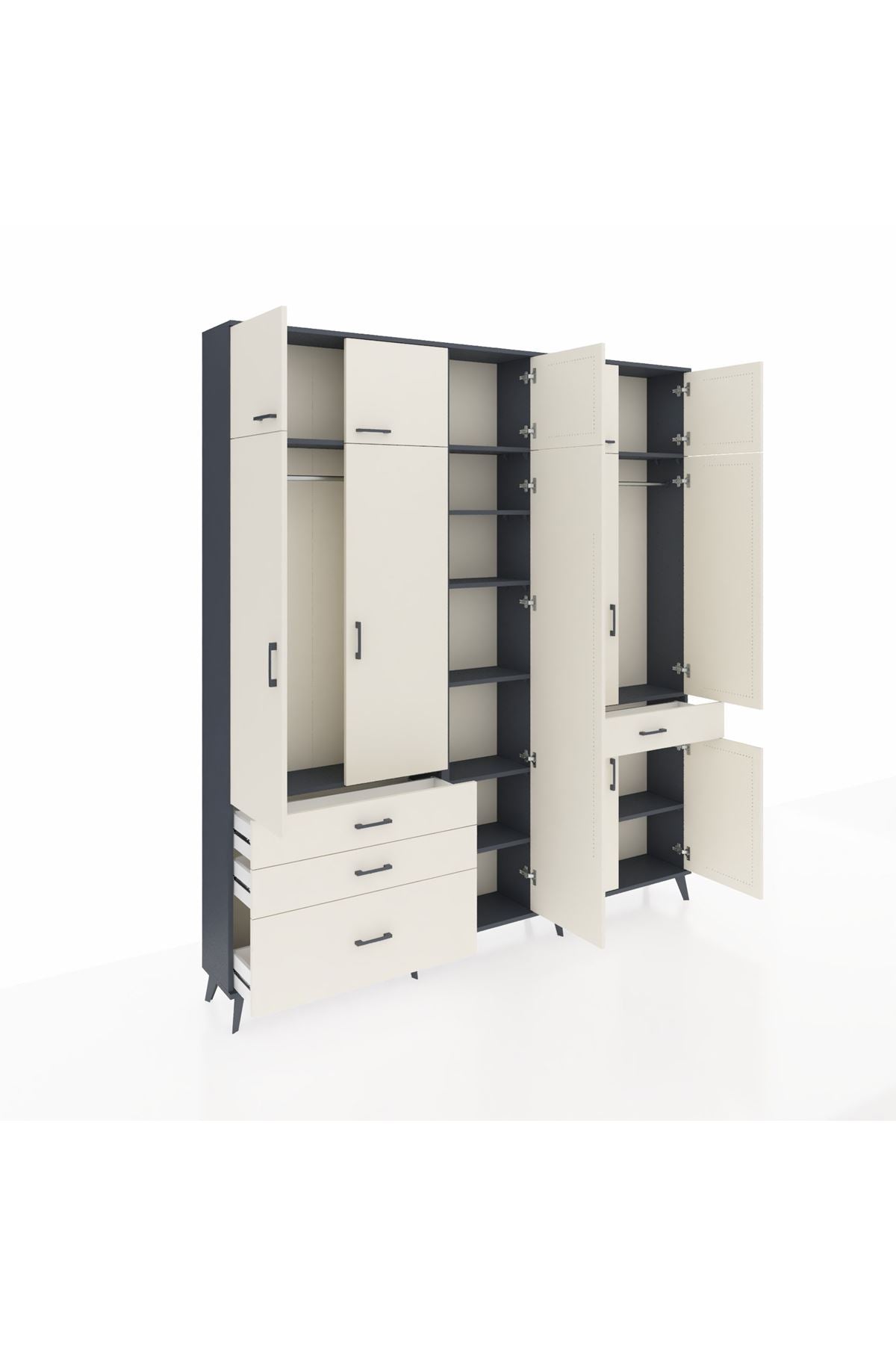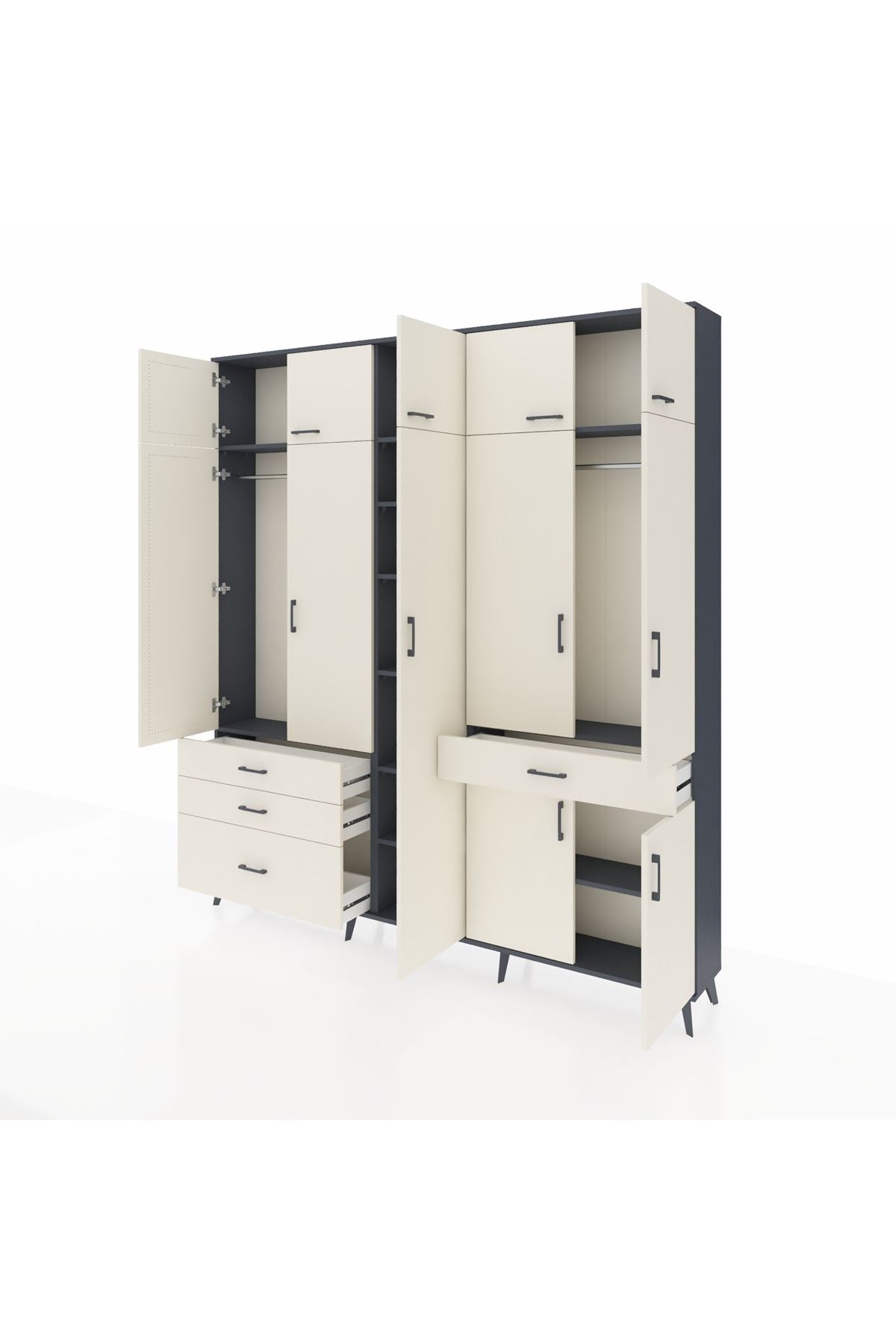 Arges Gardrop 11 Raflı 4 Çekmeceli 2 Askılı 220x30x243 Antrasit-Aytaşı