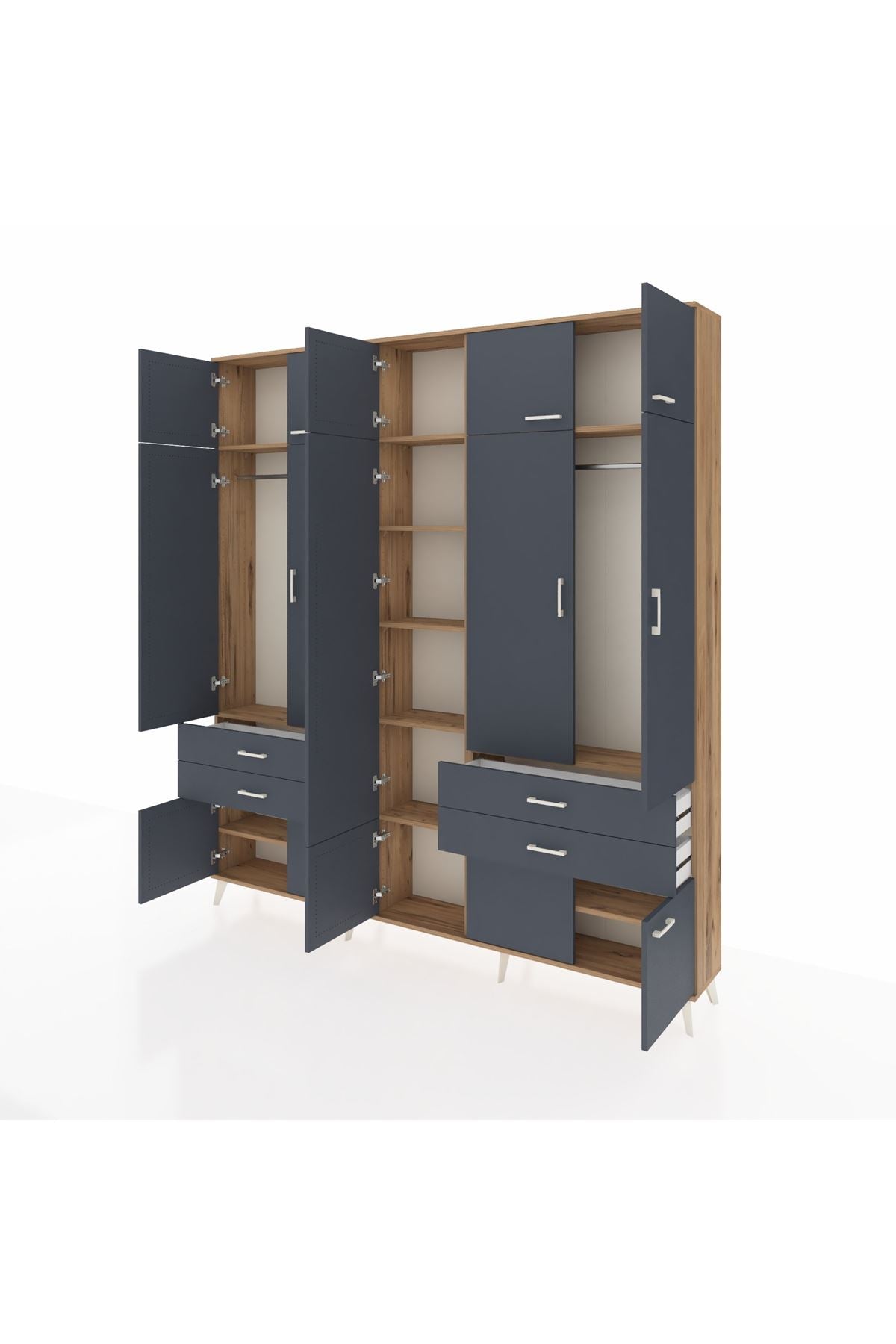 Arges Gardrop 11 Raflı 4 Çekmeceli 2 Askılı 220x30x243 Çam-Antrasit