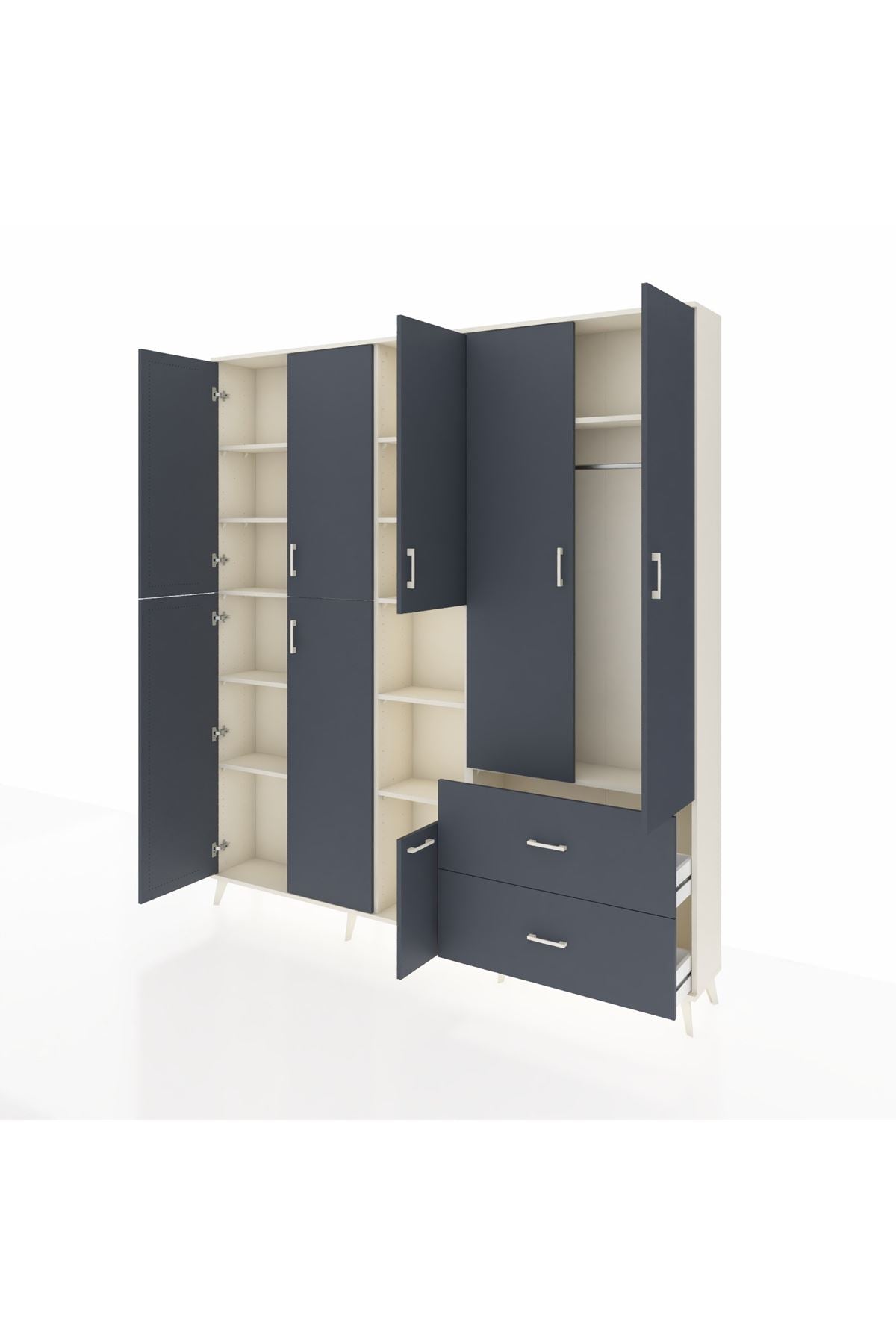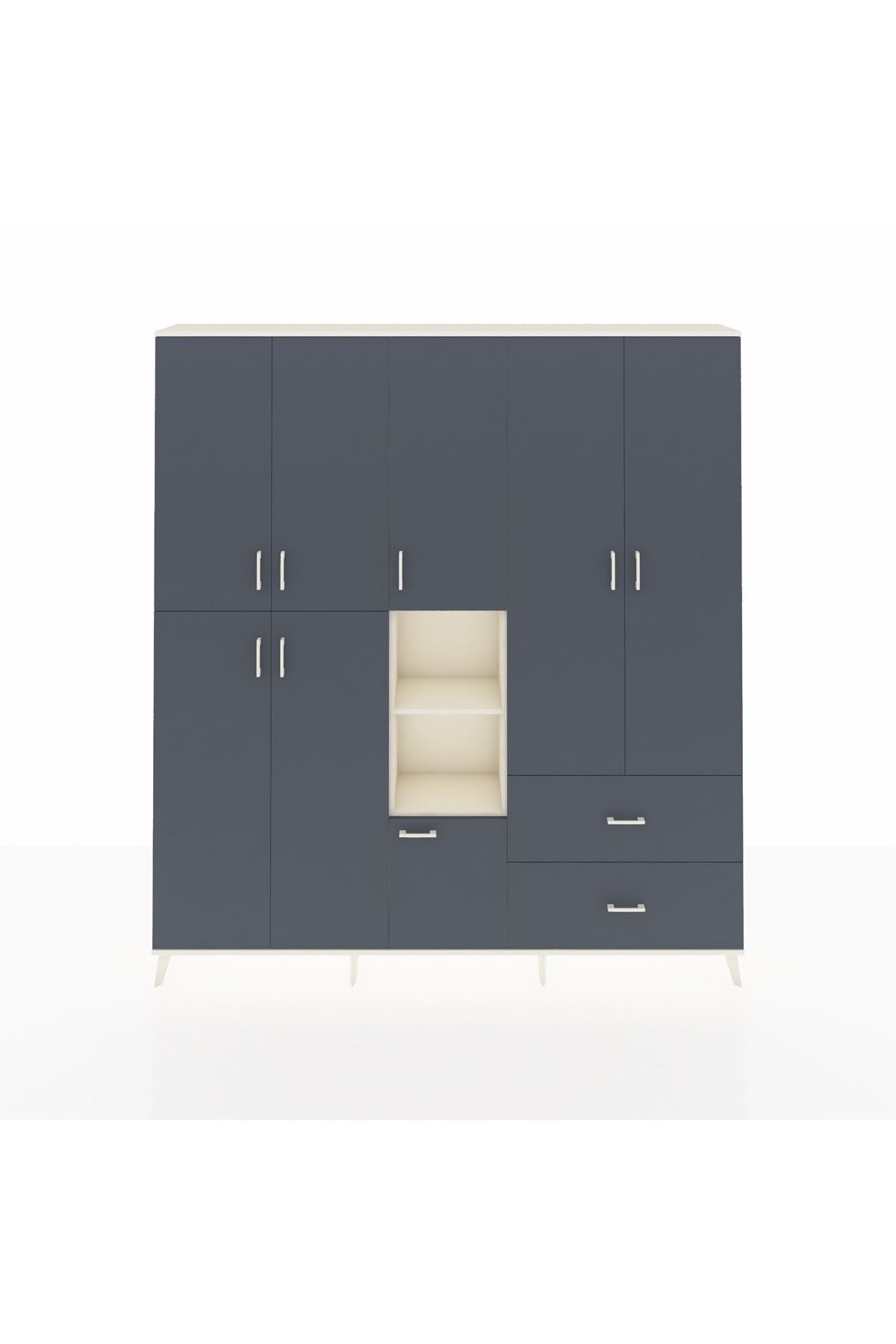 Arges Gardrop 12 Raflı 2 Çekmeceli Tek Askılı 220x30x243 Aytaşı-Antrasit