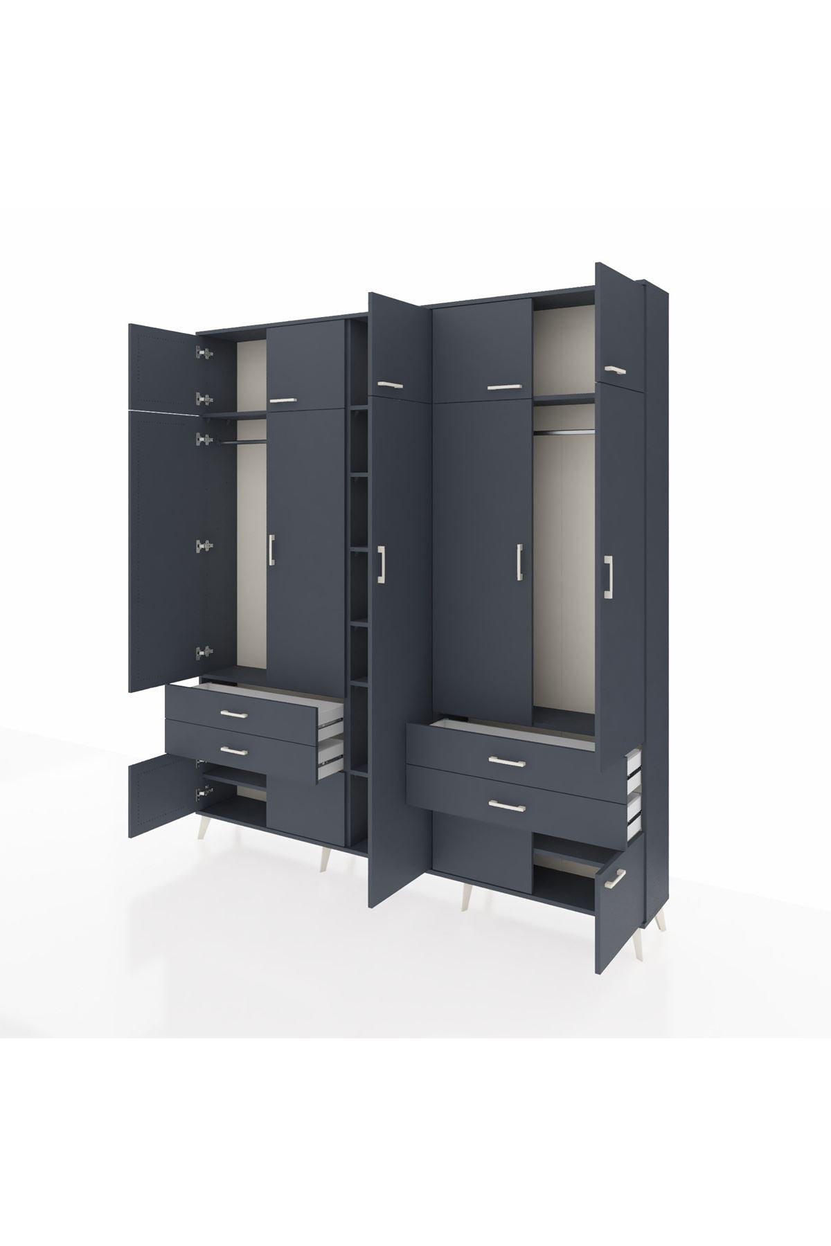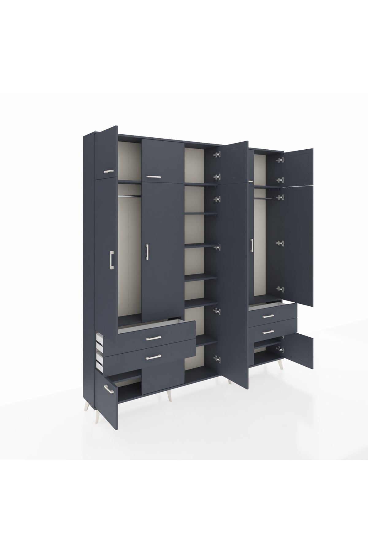 Arges Gardrop 12 Raflı 4 Çekmeceli 2 Askılı 220x30x243 Antrasit-Antrasit