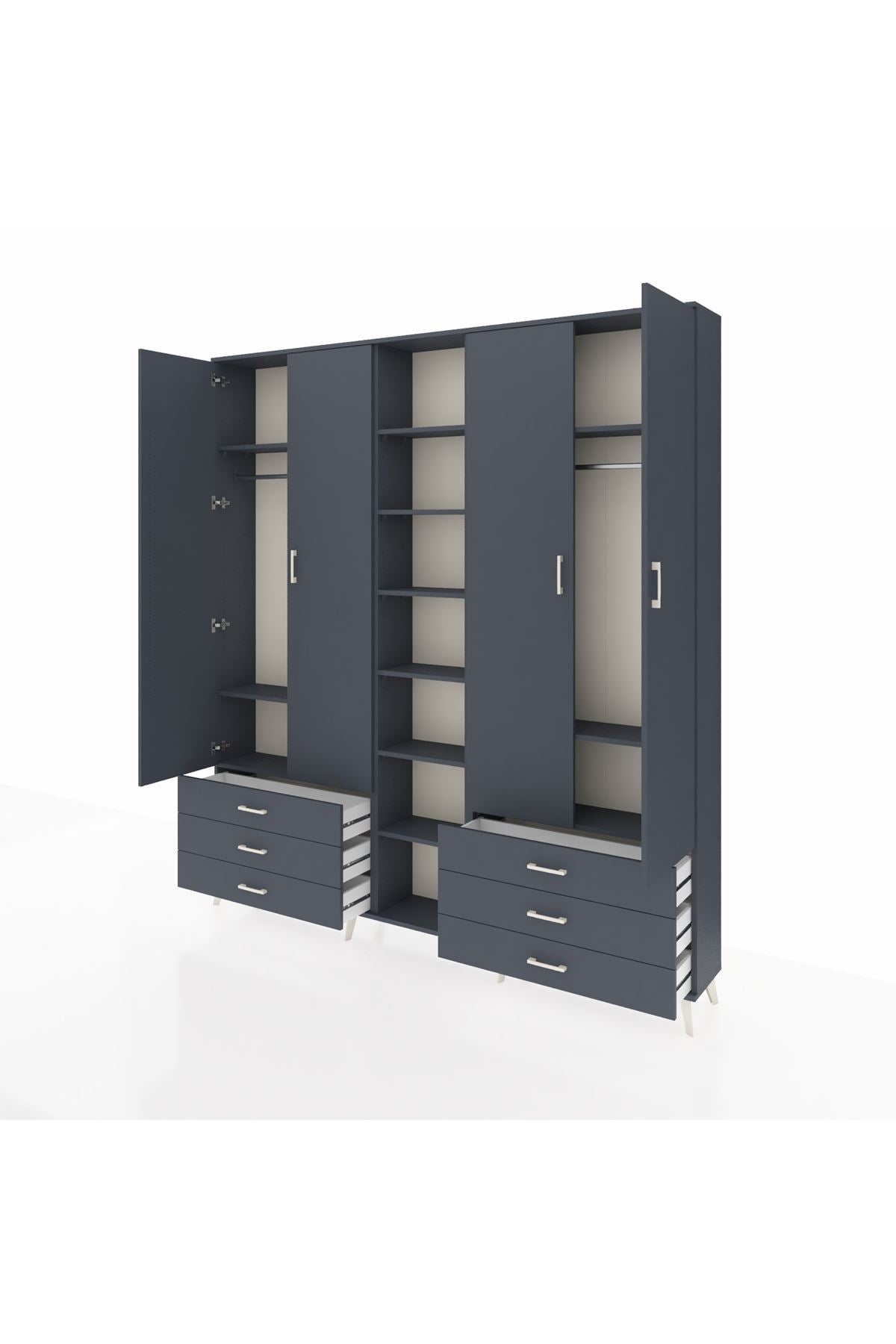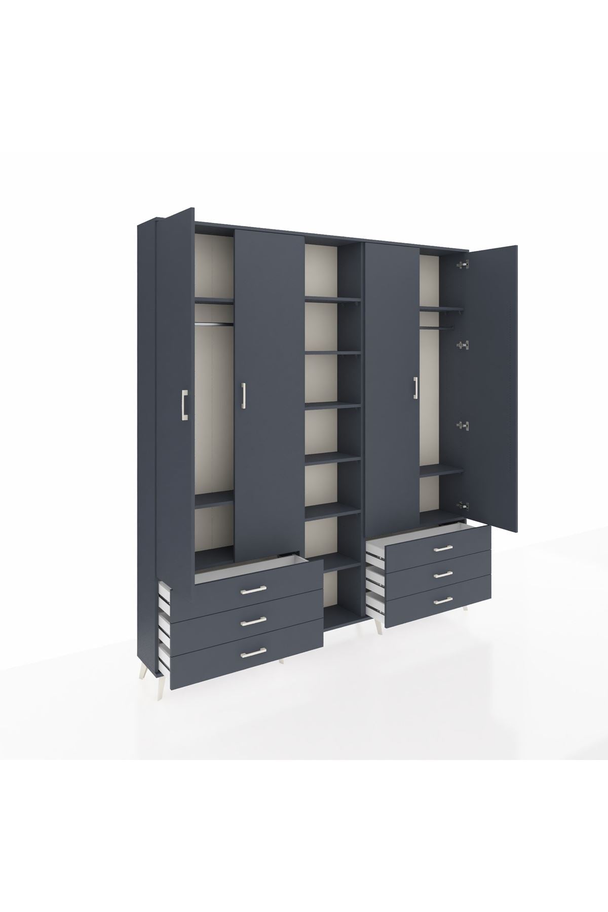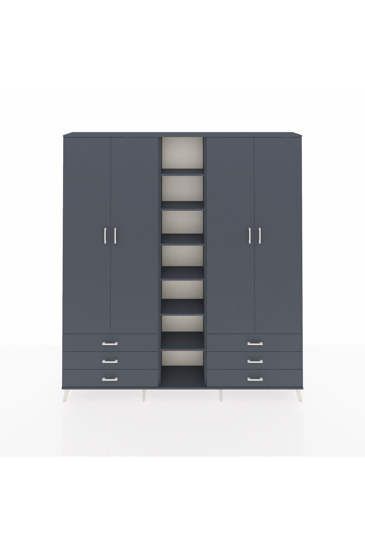 Arges Gardrop 13 Raflı 6 Çekmeceli 2 Askılı 220x30x243 Antrasit-Antrasit