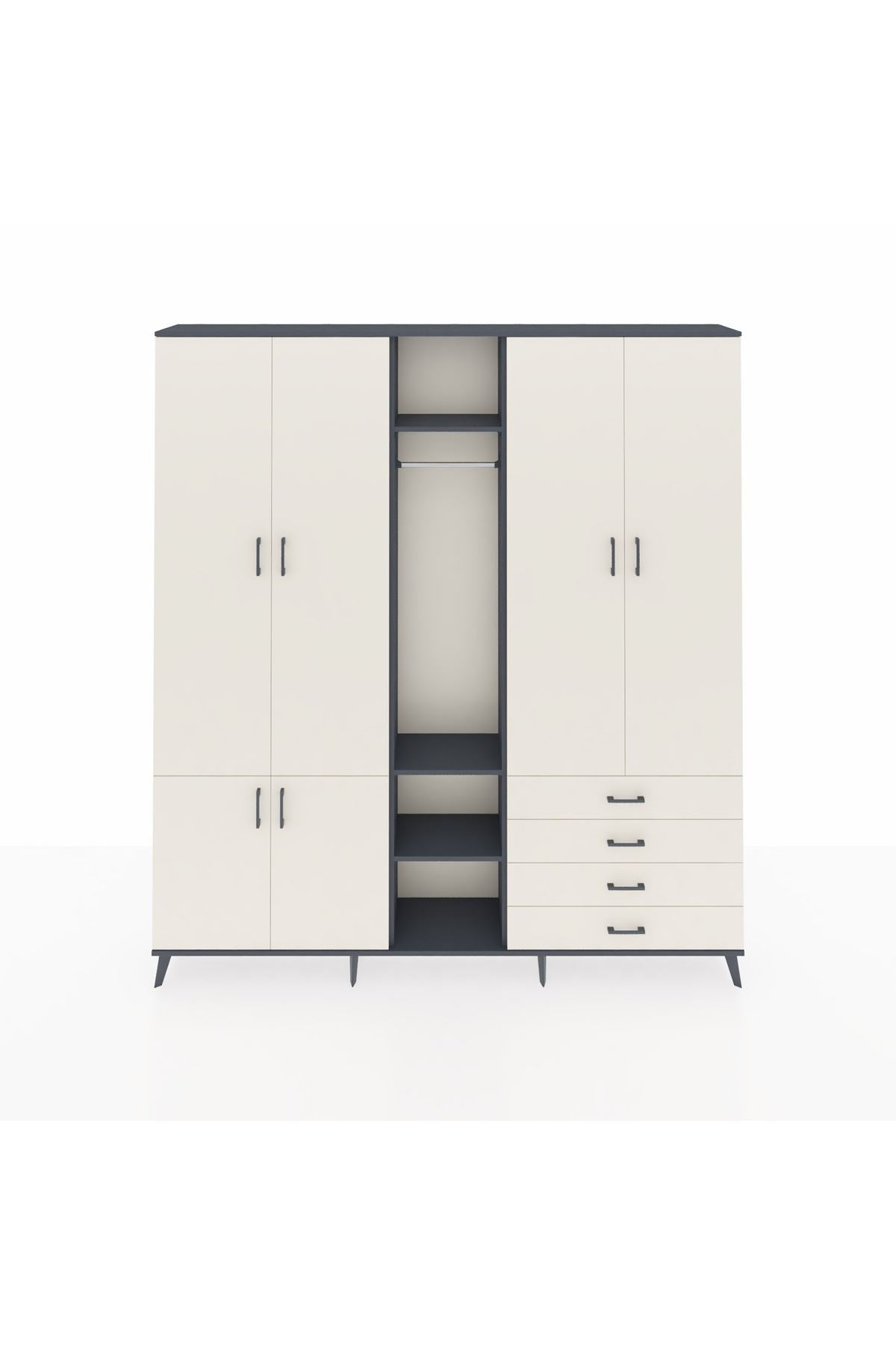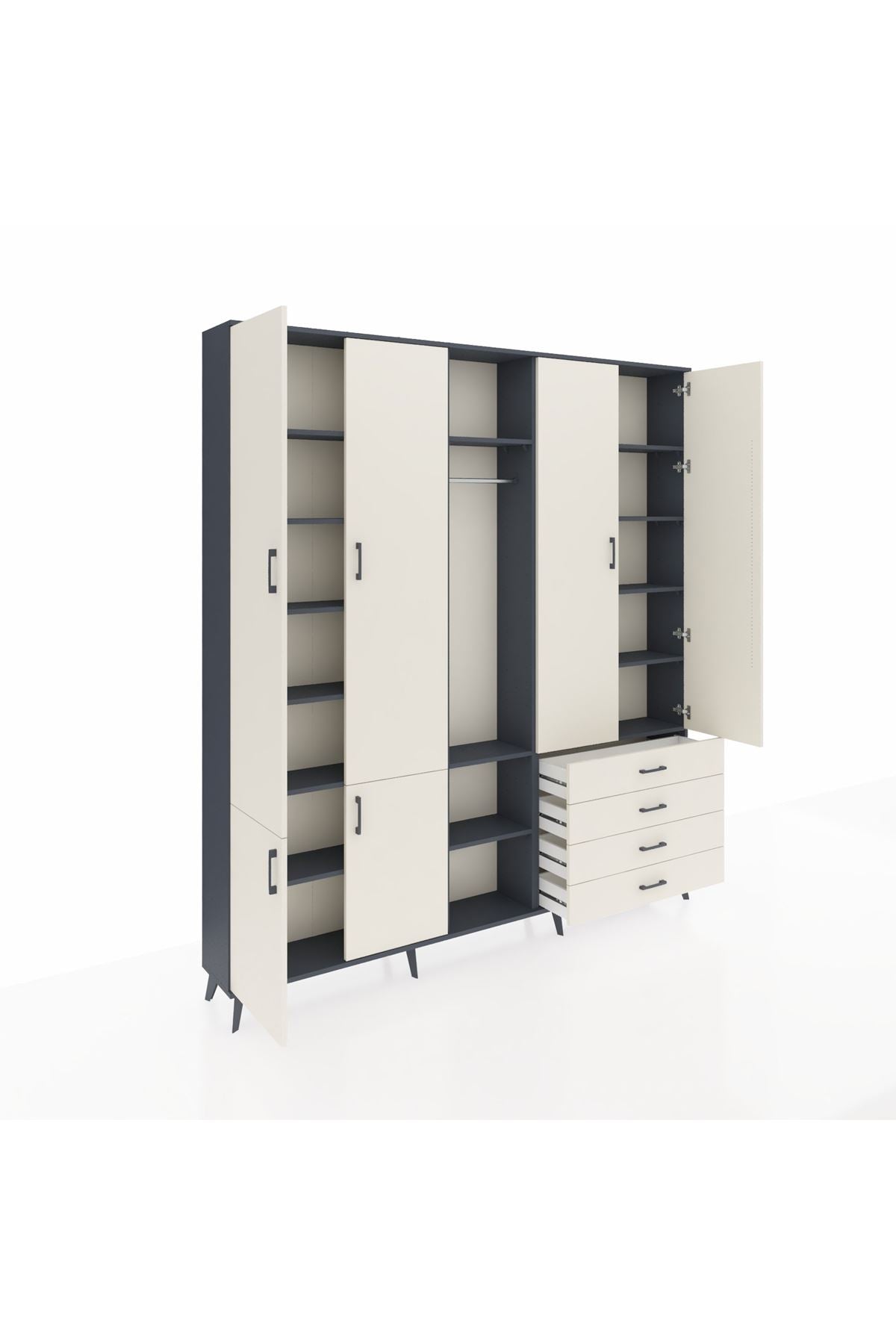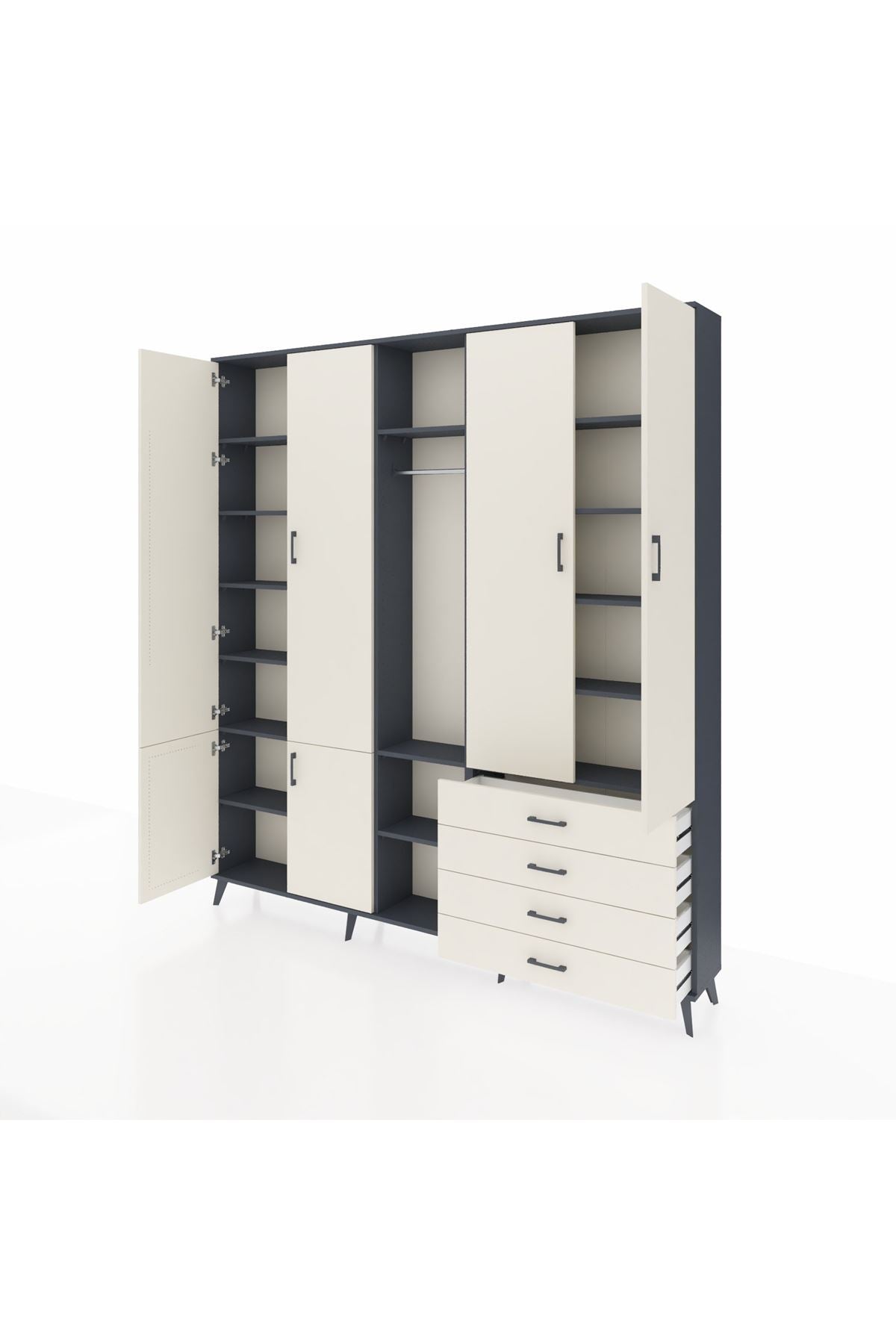 Arges Gardrop 14 Raflı 4 Çekmeceli Tek Askılı 220x30x243 Antrasit-Aytaşı