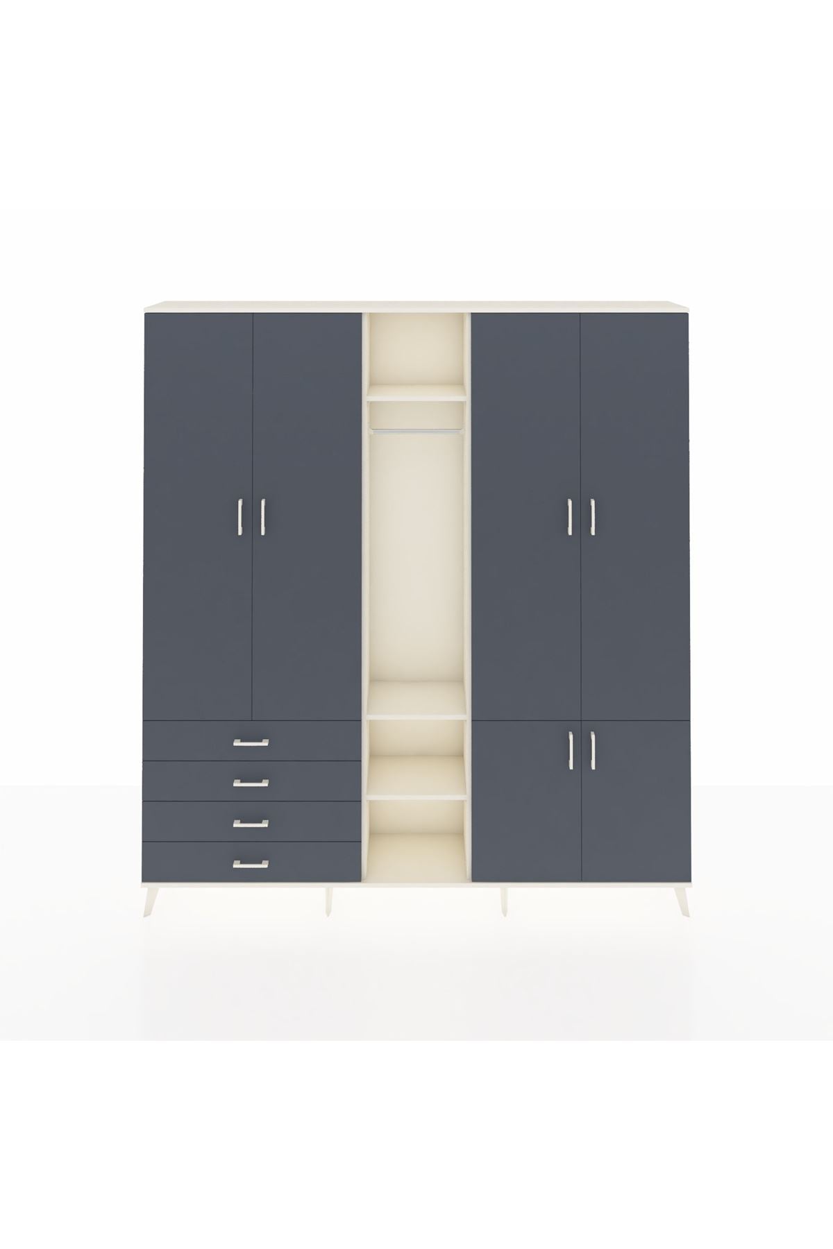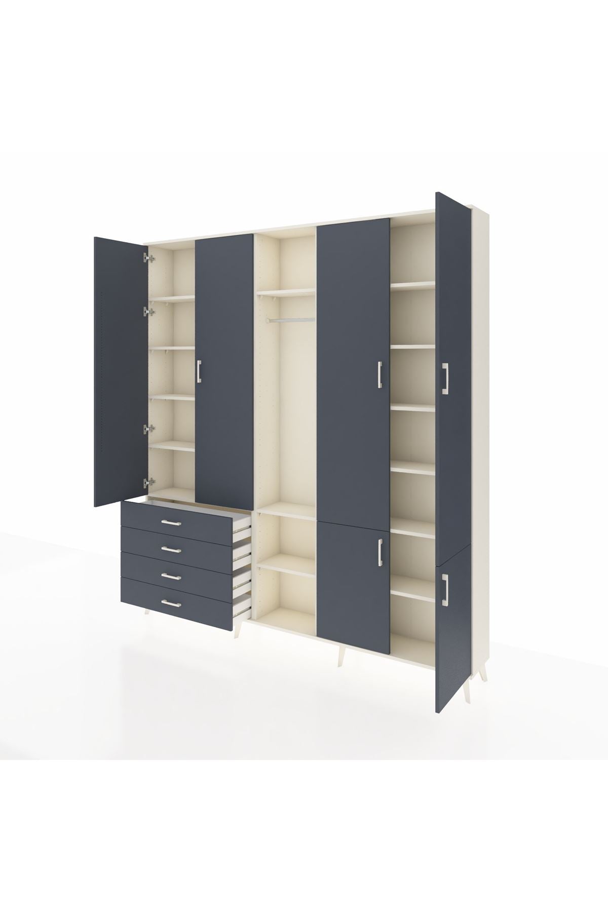 Arges Gardrop 14 Raflı 4 Çekmeceli Tek Askılı 220x30x243 Aytaşı-Antrasit